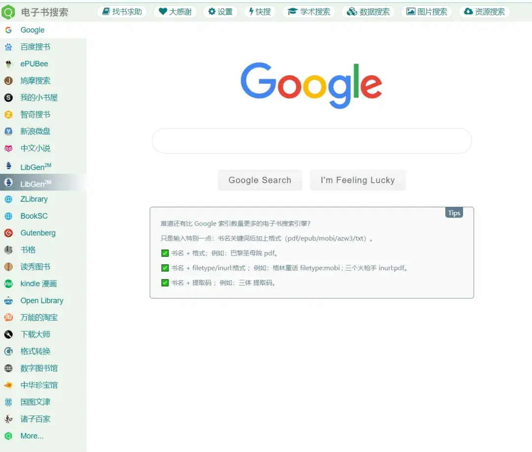 特点:综合性电子书查询平台,工具众多