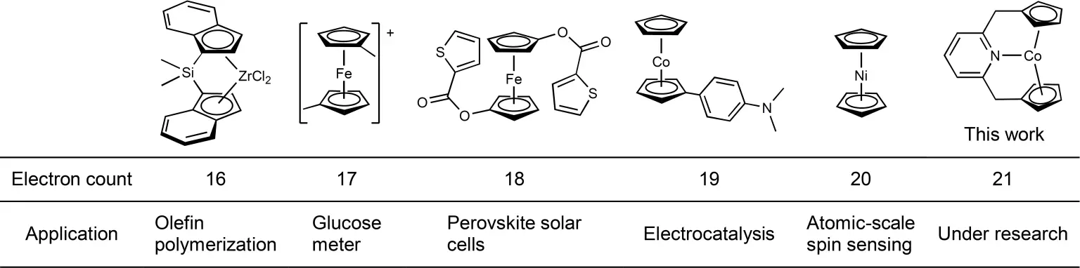 茂金属化合物、其电子数和应用举例。资料来源:Takebayashi 等人,2023 年