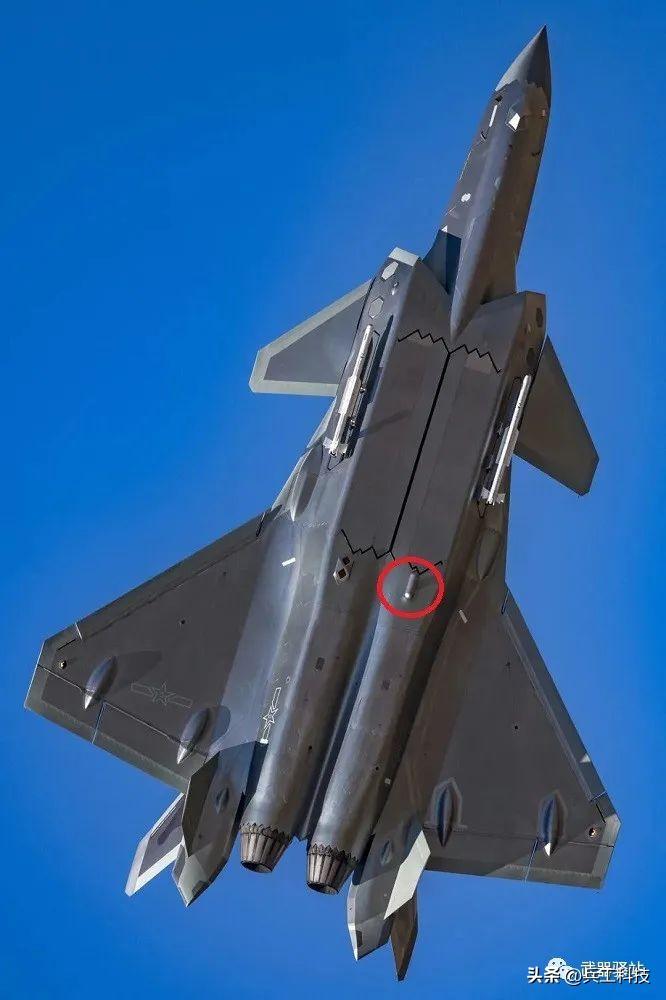 歼-20机腹部红圈内的这个配件,大家应该认识吧,它就是龙勃透镜散射器。