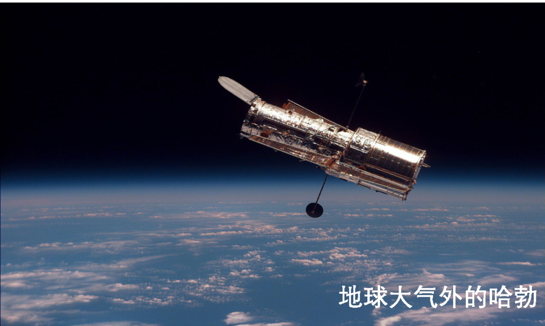 然而,望远镜造大了,理论上分辩率很高,但地面上的望远镜必须透过地球大气层,大气的扰动会破坏分辨率,让望远镜有劲使不出(参见图9说明)。为避免这个缺陷,人们就想把大型反射望远镜发射到太空里,没有大气的干扰分辨率就能更上一层楼。早在1923年,人们就开始张罗太空里的望远镜,但经费和技术直到1970年才搞定,美国的NASA和欧洲航天局联合支持了哈勃太空望远镜计划。哈勃这个名字是纪念上面提到的那位发现外星离得越远、红移越大的天文学家哈勃。哈勃的主反射镜口径达到2400毫米(图10)。
