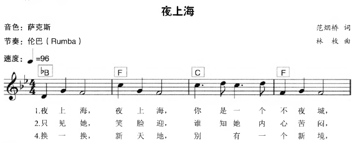 第四,随着生活水平的提高,电子琴等键盘乐器得到了广泛的应用和普及,学习电子琴演奏的人们越来越多,电子琴的各种标准也越来越规范、系统。就拿电子琴谱法来说,也有了电子琴专业记谱标准,下图就是电子琴标准的记谱法,既有简谱或五线谱,还有和弦和指法,同时还记录了歌词,可成为弹唱谱。