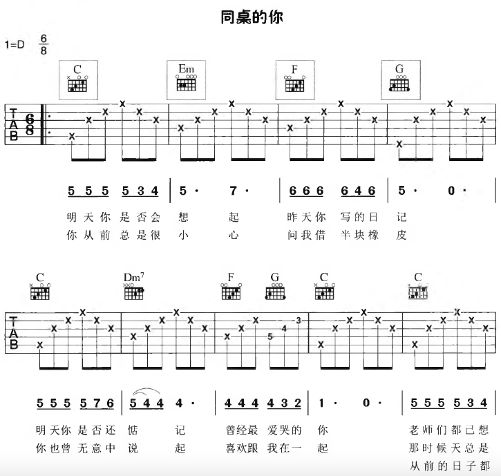 民谣吉他谱的和弦标记基本与电子琴谱的情况相同。