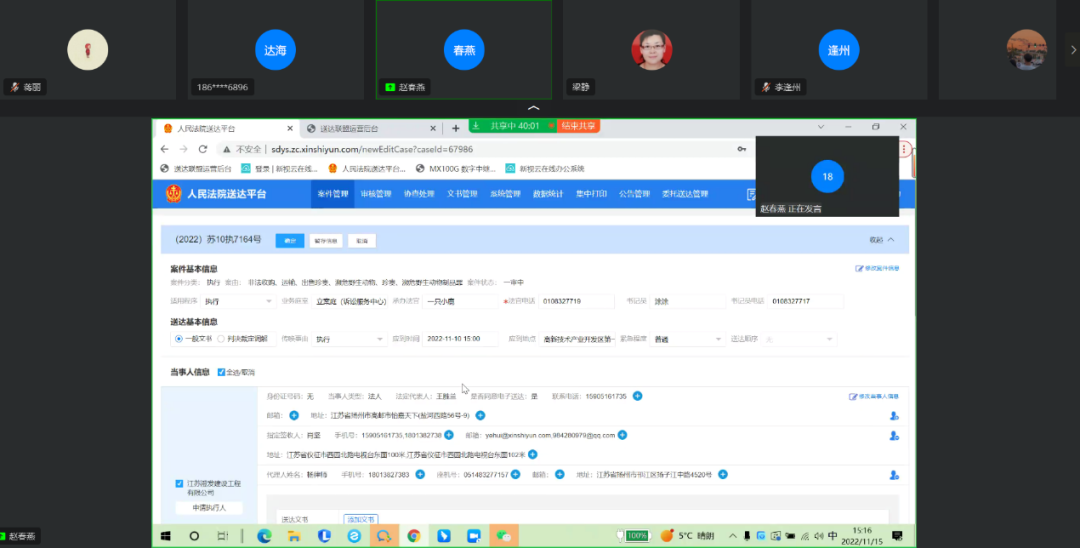 培训会上,通达海、新视云的驻场工程师对网上电子送达、邮政集约送达平台的特点、功能及操作方法进行了详细的介绍,现场演示了两大平台的具体操作步骤,对在使用过程中遇到的问题及难点进行了解答,以确保参会人员切实掌握网上电子送达工作操作技能和操作流程。