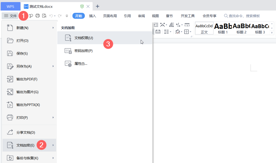 使用 WPS「文档加密」功能,可以通过「文档权限」对文件开启私密文档保护。