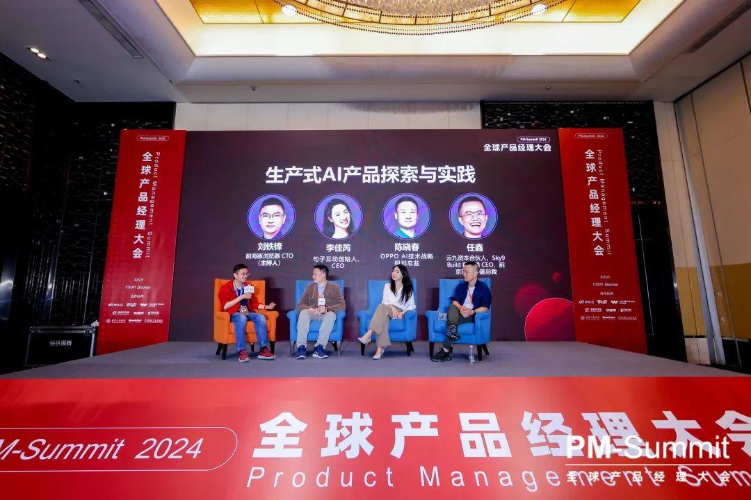 为了找到这些问题的答案,本次论坛的最后,在前海豚浏览器 CTO 刘铁锋的主持下,句子互动创始人 & CEO 李佳芮,OPPO AI 技术战略规划总监陈晓春,以及云九资本合伙人、前京东 O2O 副总裁任鑫齐聚一堂,围绕“生产式 AI 产品探索与实践”这个主题,展开了一场更为深度的技术探讨和经验分享,希望能以此激发更多关于利用生产式 AI 推动创新和增长的新思考。