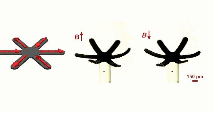 由磁场驱动的软体机器人,看上去像是花瓣一样。