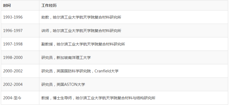 博士毕业于哈尔滨工业大学复合材料专业的冷劲松教授自 2004 年起担任着哈工大航天学院复合材料与结构研究所教授、博导的职务。