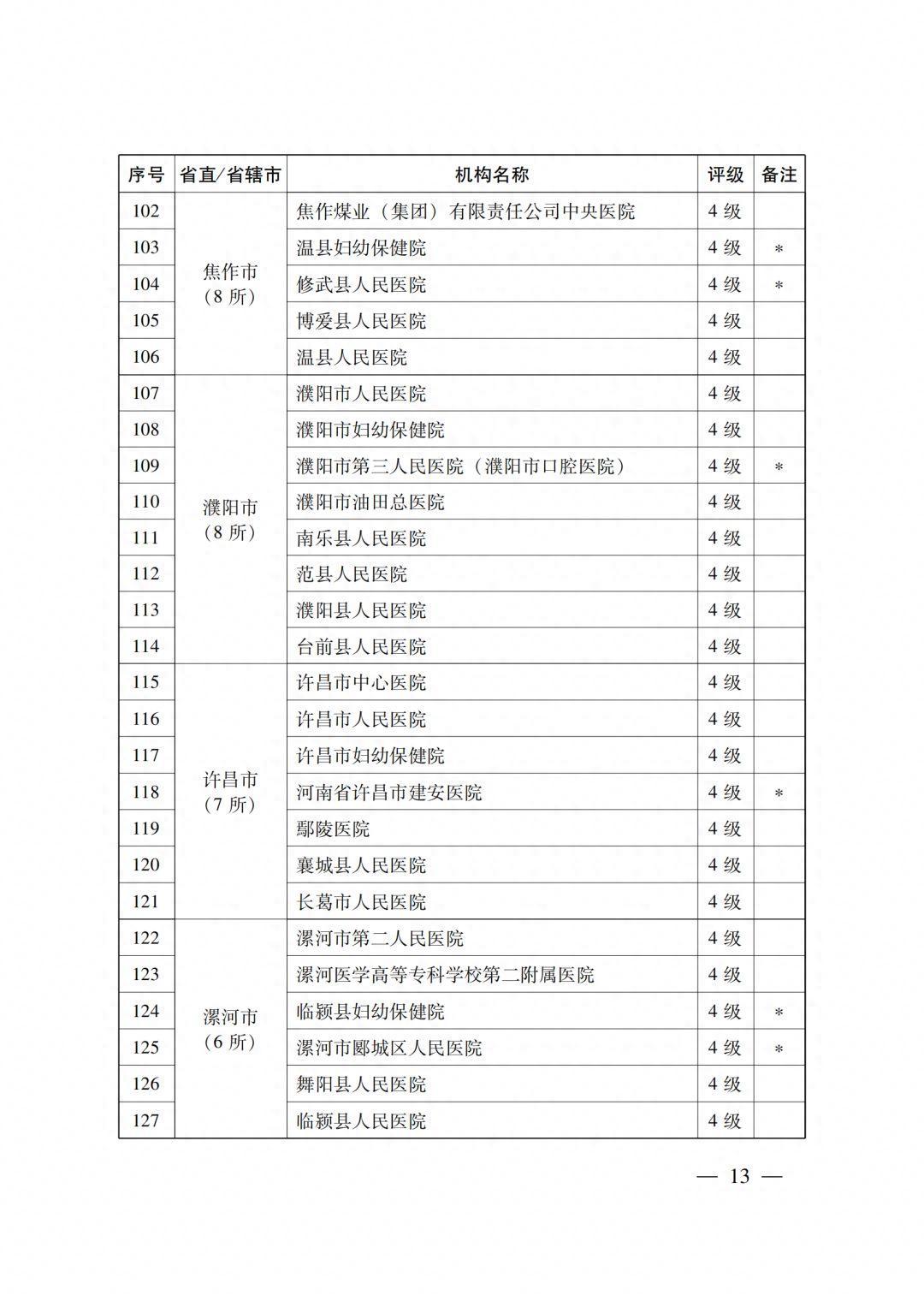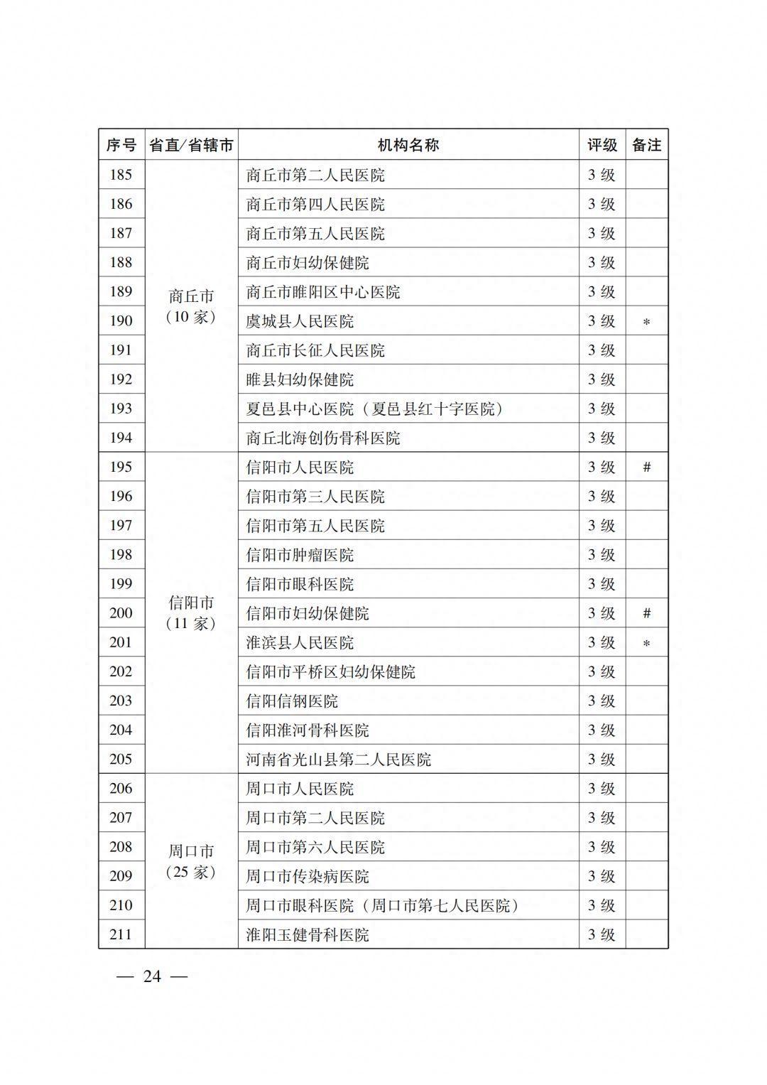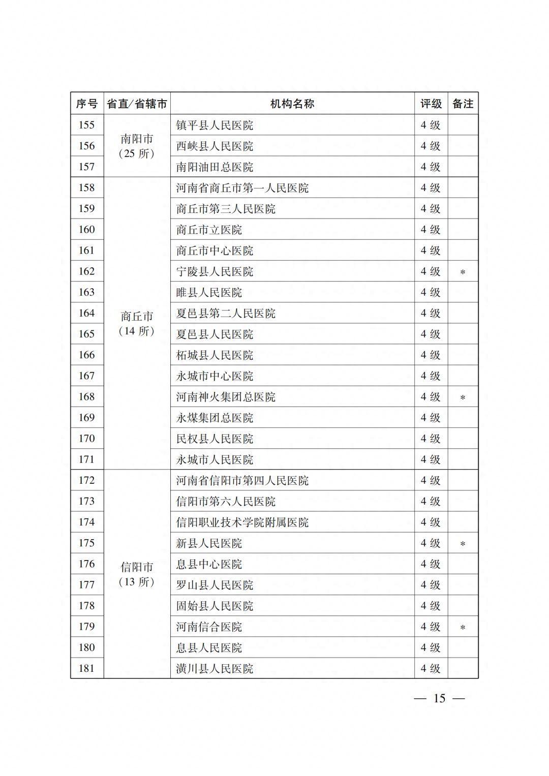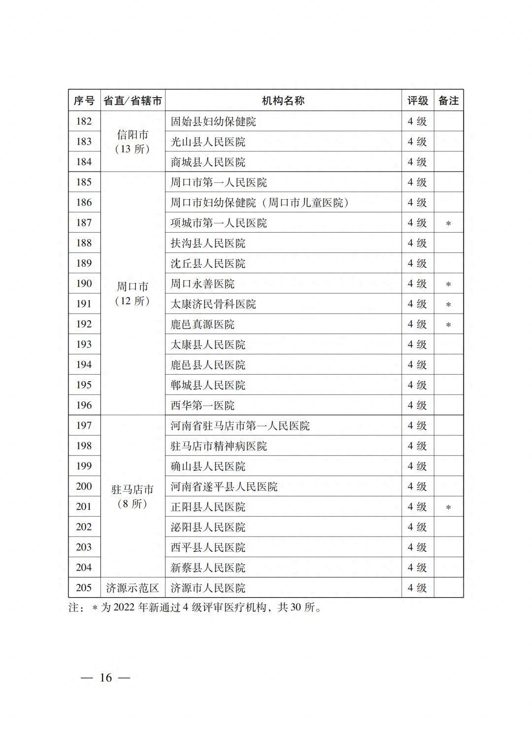 4级医疗机构205所 (附件2),其中:2022年新通过4级评审30所,既往评级为4级的175所;14所省直医疗机构,18个省辖市的191所医疗机构。