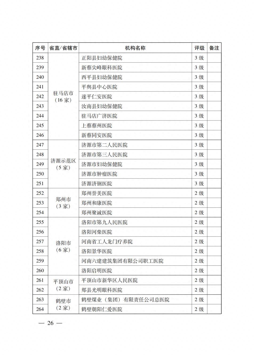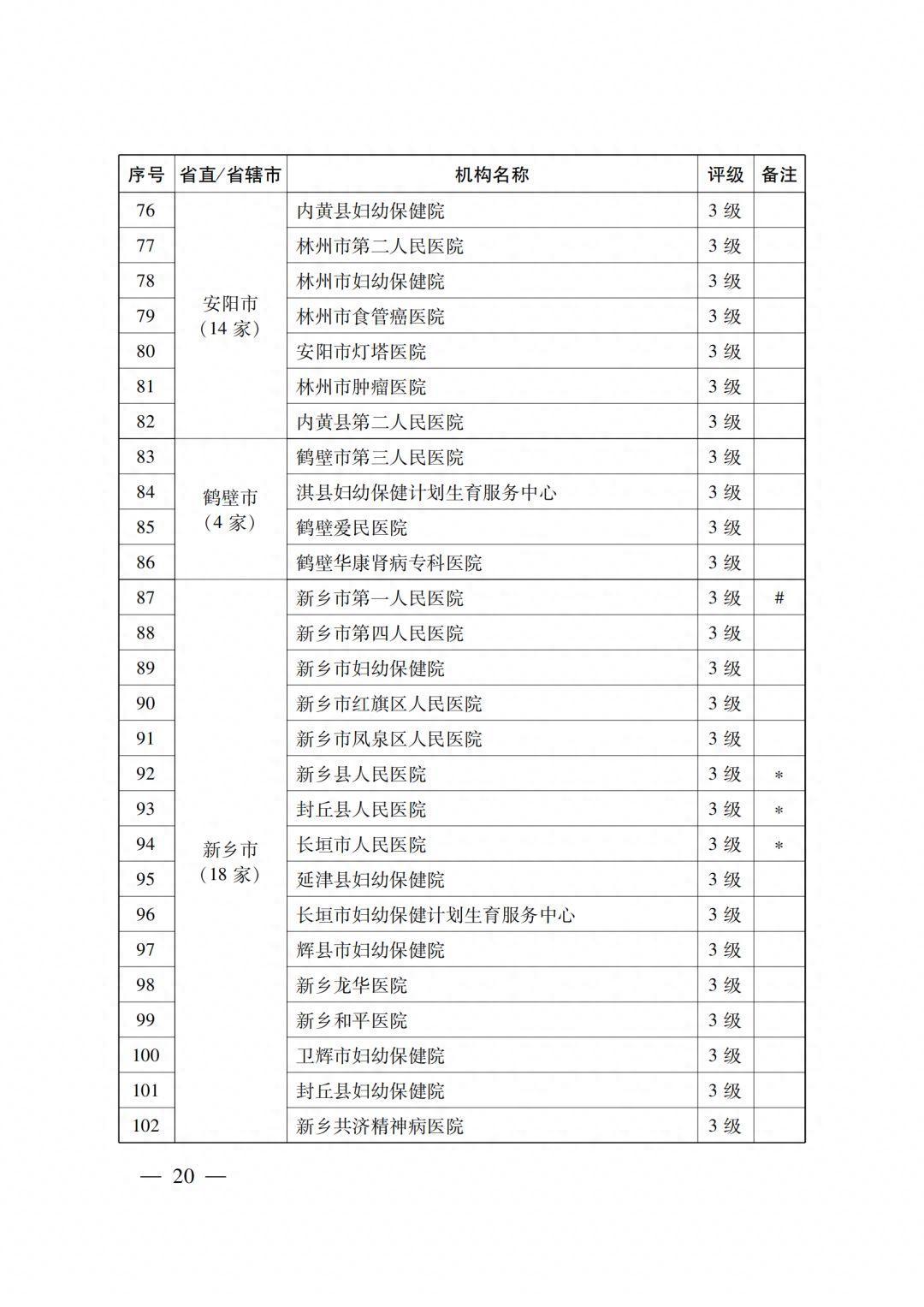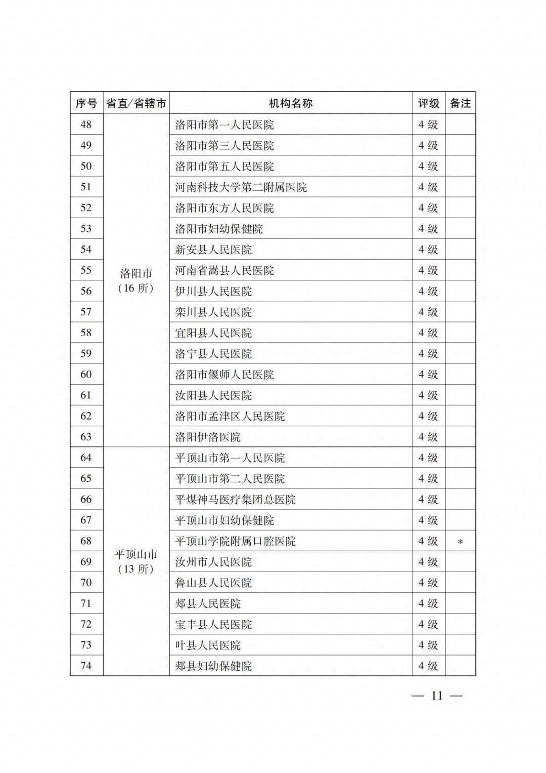 4级医疗机构205所 (附件2),其中:2022年新通过4级评审30所,既往评级为4级的175所;14所省直医疗机构,18个省辖市的191所医疗机构。