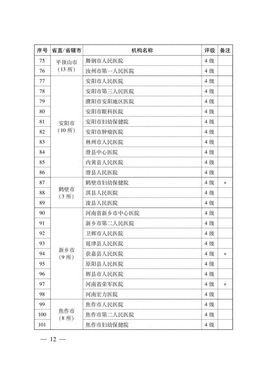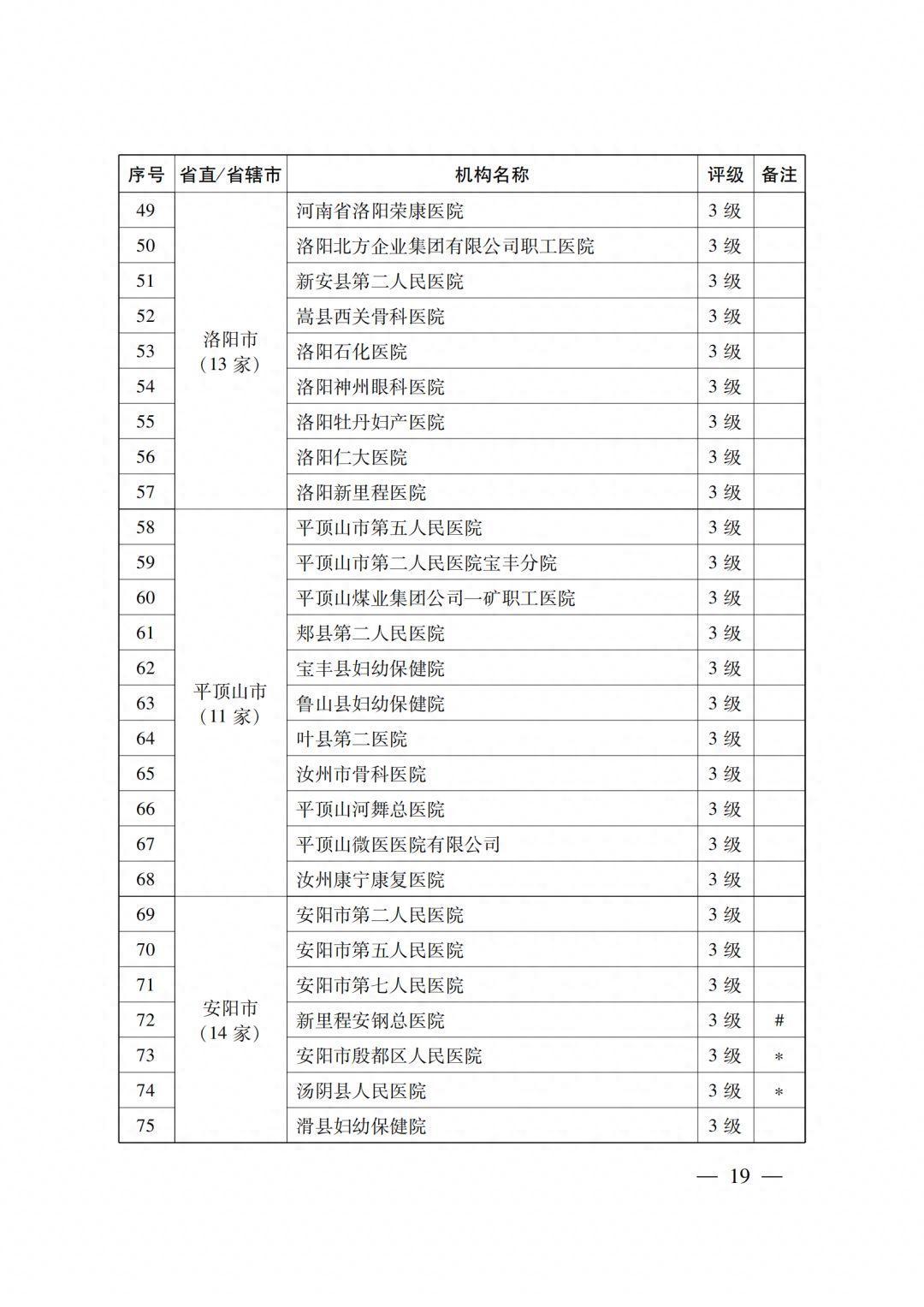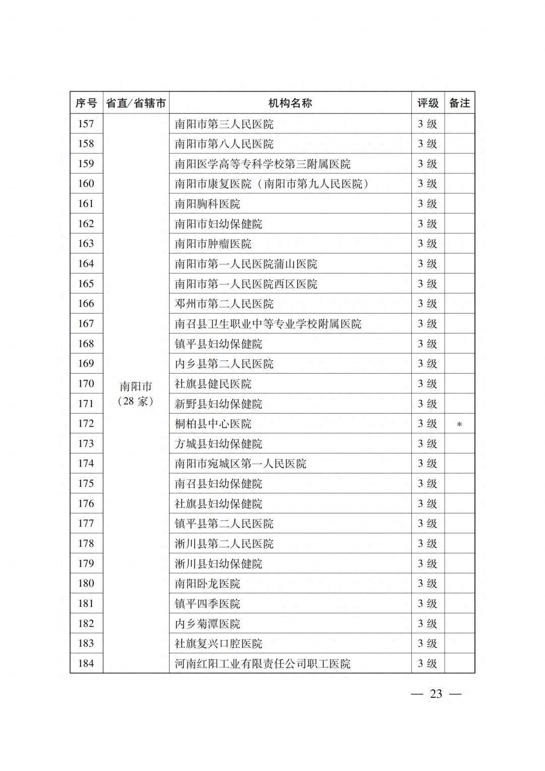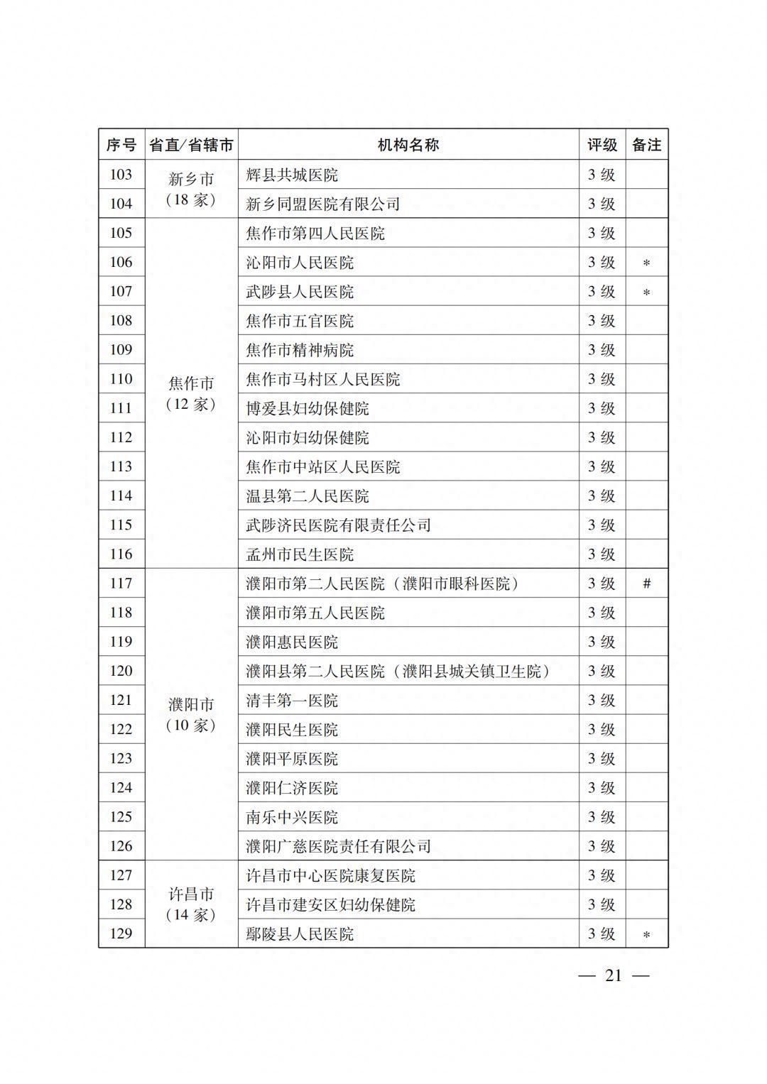 4级医疗机构205所 (附件2),其中:2022年新通过4级评审30所,既往评级为4级的175所;14所省直医疗机构,18个省辖市的191所医疗机构。