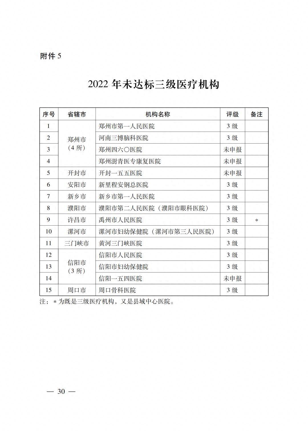 未达标三级医疗机构15所 ,其中禹州市中心医院为县域中心医院(附件5)。