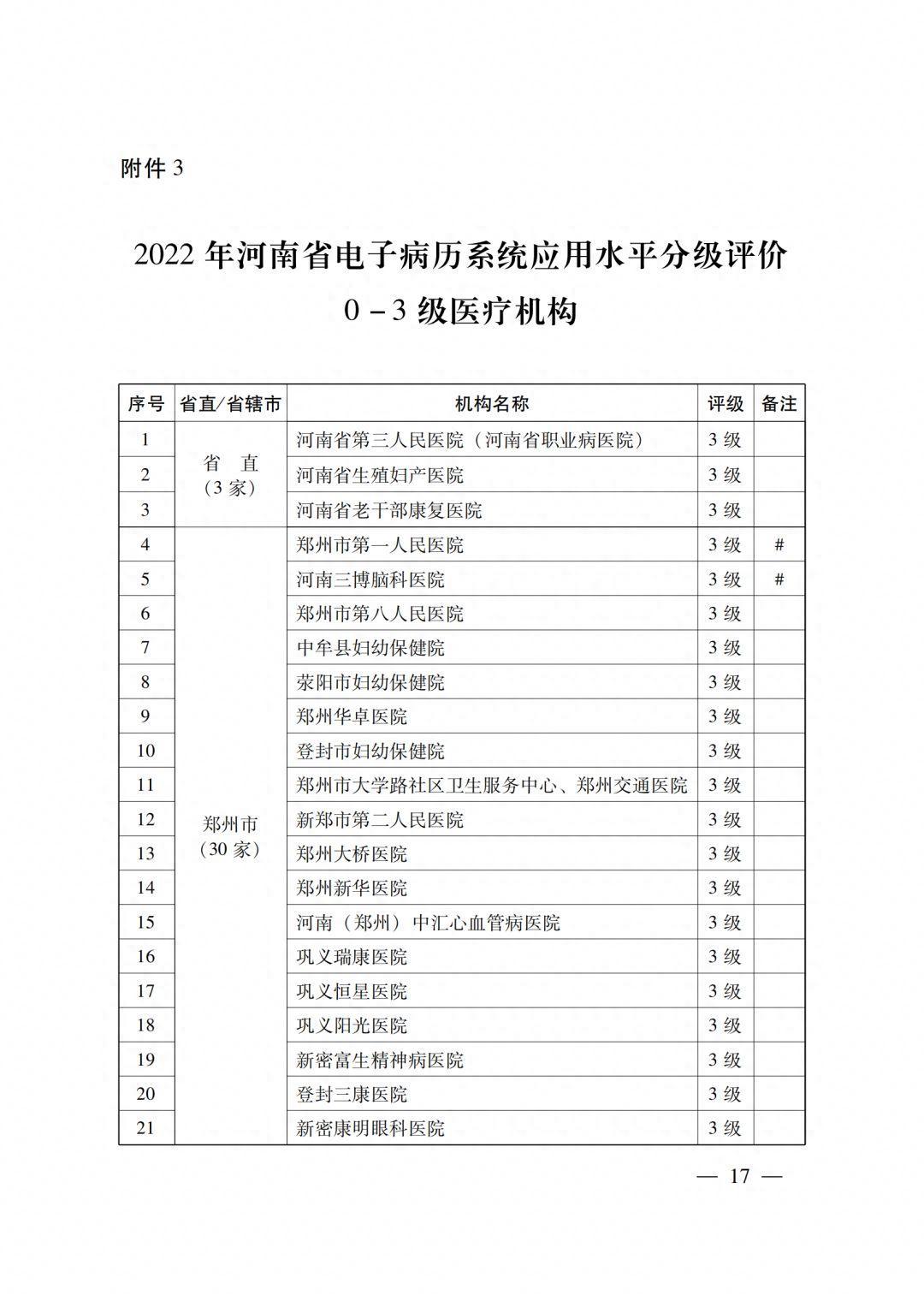 县域医疗中心电子病历3级的医疗机构18所, 涉及11个省辖市(附件4)。