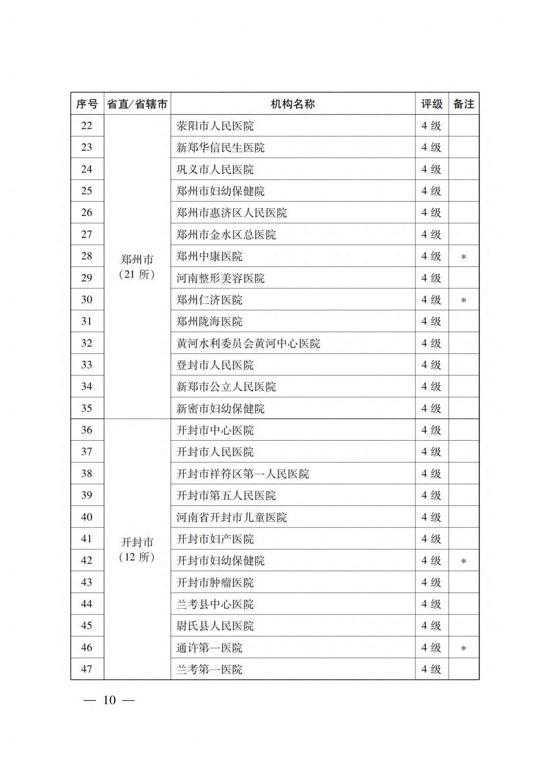 6级2所,为郑州大学第一附属医院、中国医学科学院阜外医院华中医院 ;