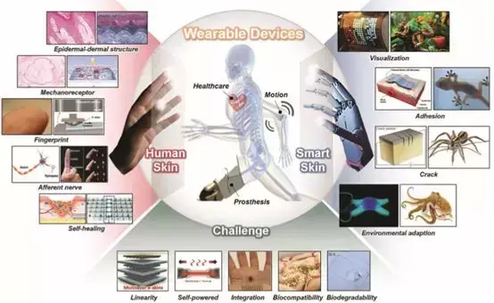 皮肤是人类最大的感觉器官,具有保护和感觉等多种功能。柔性电子产品的出现为智能电子领域带来了无限的前景,其中,电子皮肤具有类似人类的压力敏感性、疼痛感知、和温度感应,此外,它还包含超越人类皮肤的功能,包括接近检测和化学传感。