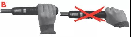 如果为了要达到一个很大扭力时而需要同时使用两只手时,用一只手握紧手柄,另一只手放于第一只手上,而不是放于扳手上。使用扭力扳手时应站立平稳,防止失衡摔倒。切勿将扳手或扳手任一部分浸入任何液体中。切勿自行拆卸扭力扳手,以免影响扭力扳手的精度。