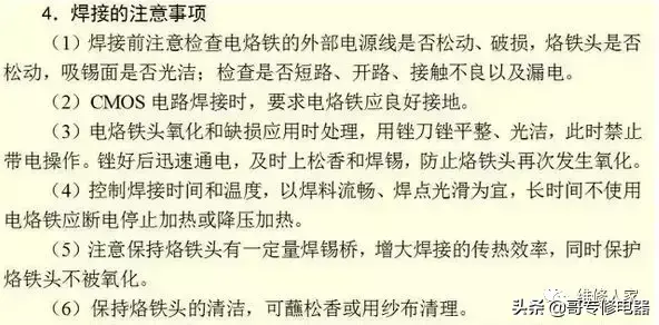 电子焊接 技巧和方法?电子焊接技巧及方法。a、焊完所有的引脚后,用焊剂浸湿所有引脚以便清洗焊锡。在需要的地方吸掉多余的焊锡,以消除任何短路和搭接。最后用镊子检查是否有虚焊,...