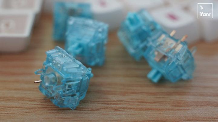 除了市面上最常见的樱桃红青茶黑银五种轴体之外,还有很多偏小众的轴体,比如我自己选购的就是「Zealpc Aqua Zilent 彩透静音蓝轴 V2」。在轴体市场中,青绿蓝这三种颜色往往意味着最具有段落感的手感,也表明它们往往伴随着巨大的声响,也就是最能代表机械键盘的清脆噼啪声。静音蓝轴就是在保留这种段落感的同时,降低敲击产生的噪音。