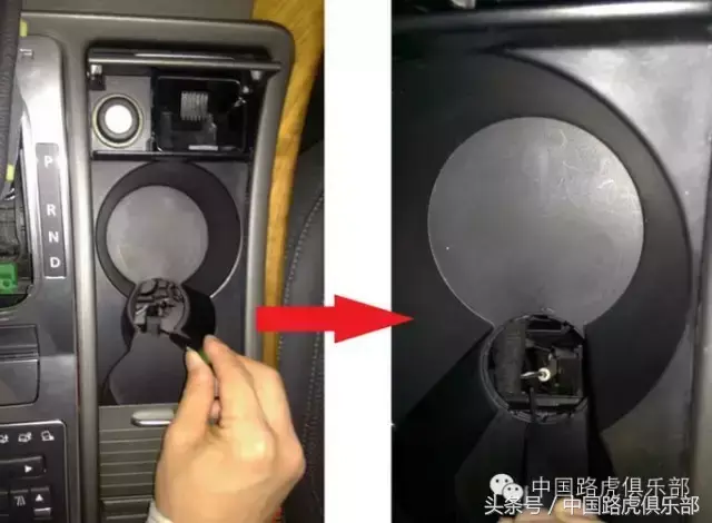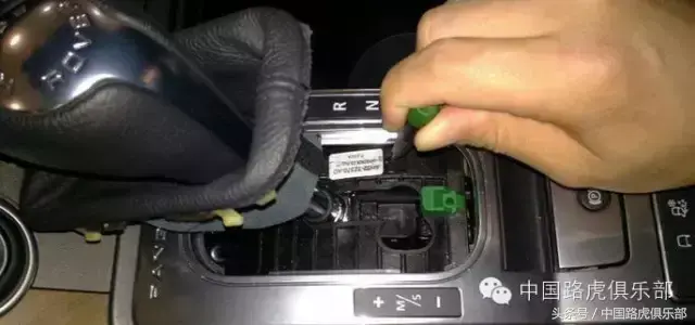 上图是揽胜运动的P档的应急解除方法,有个小孔,通过工具下按。