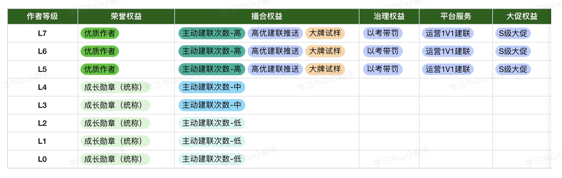 针对不同等级的达人,抖音电商提供不同类型的权益,具体权益见下表: