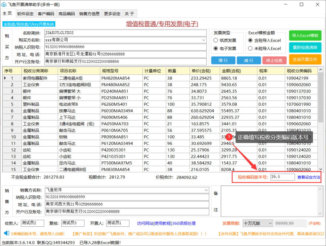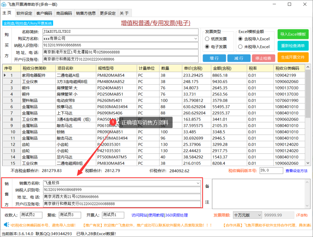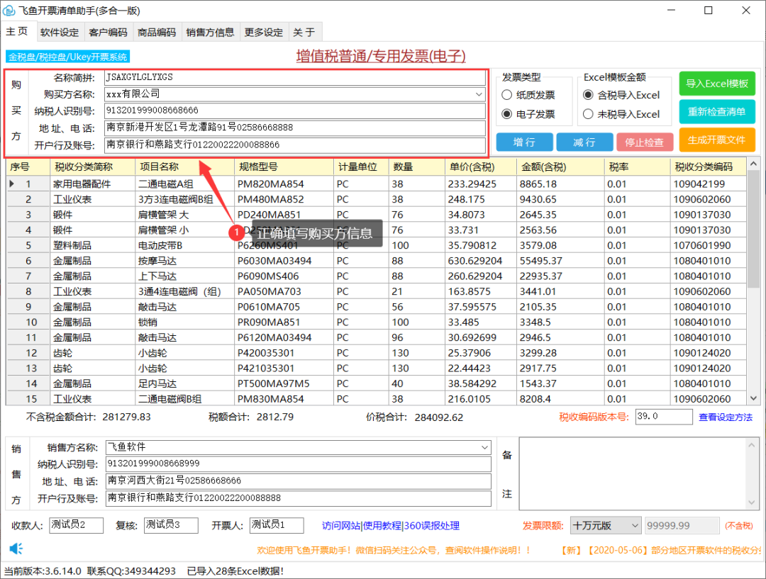 第一步: 飞鱼开票清单助手(多合一版)正确填写购方信息