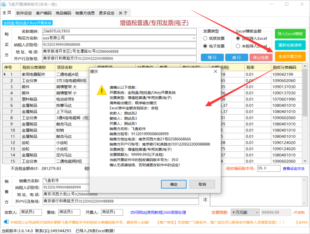 飞鱼开票清单助手(多合一版)生成发票文件提示