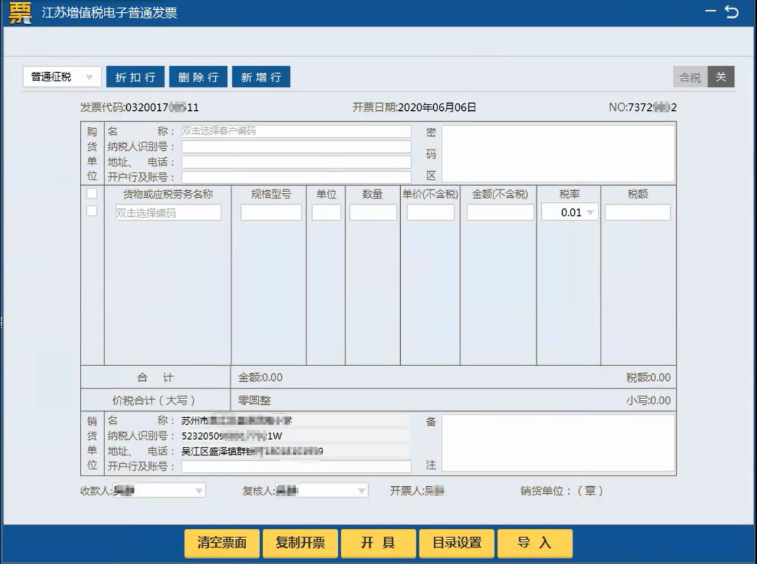 第五步: 正确填写开票人员信息,核对销货清单内容、开票金额,完善发票备注栏信息