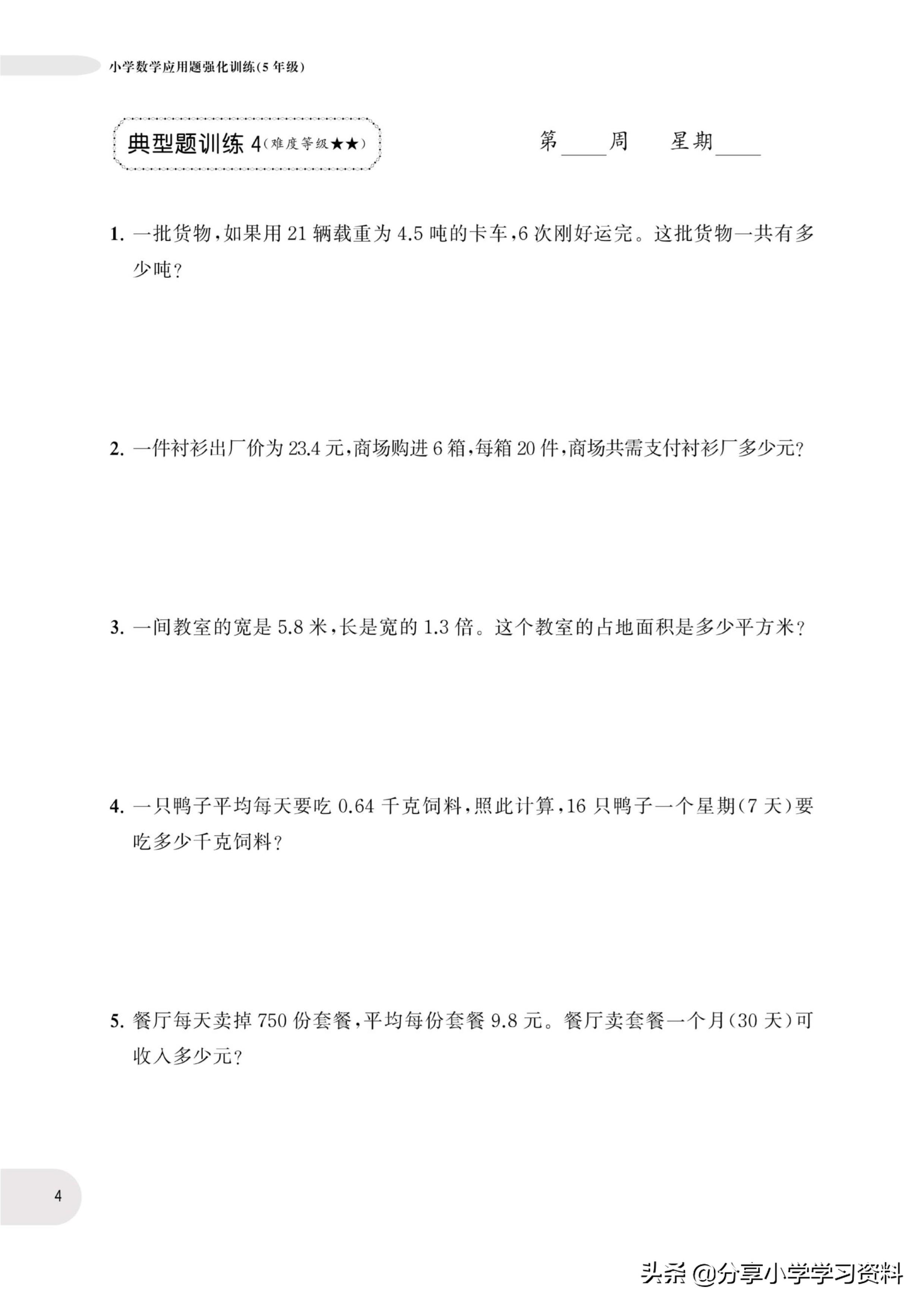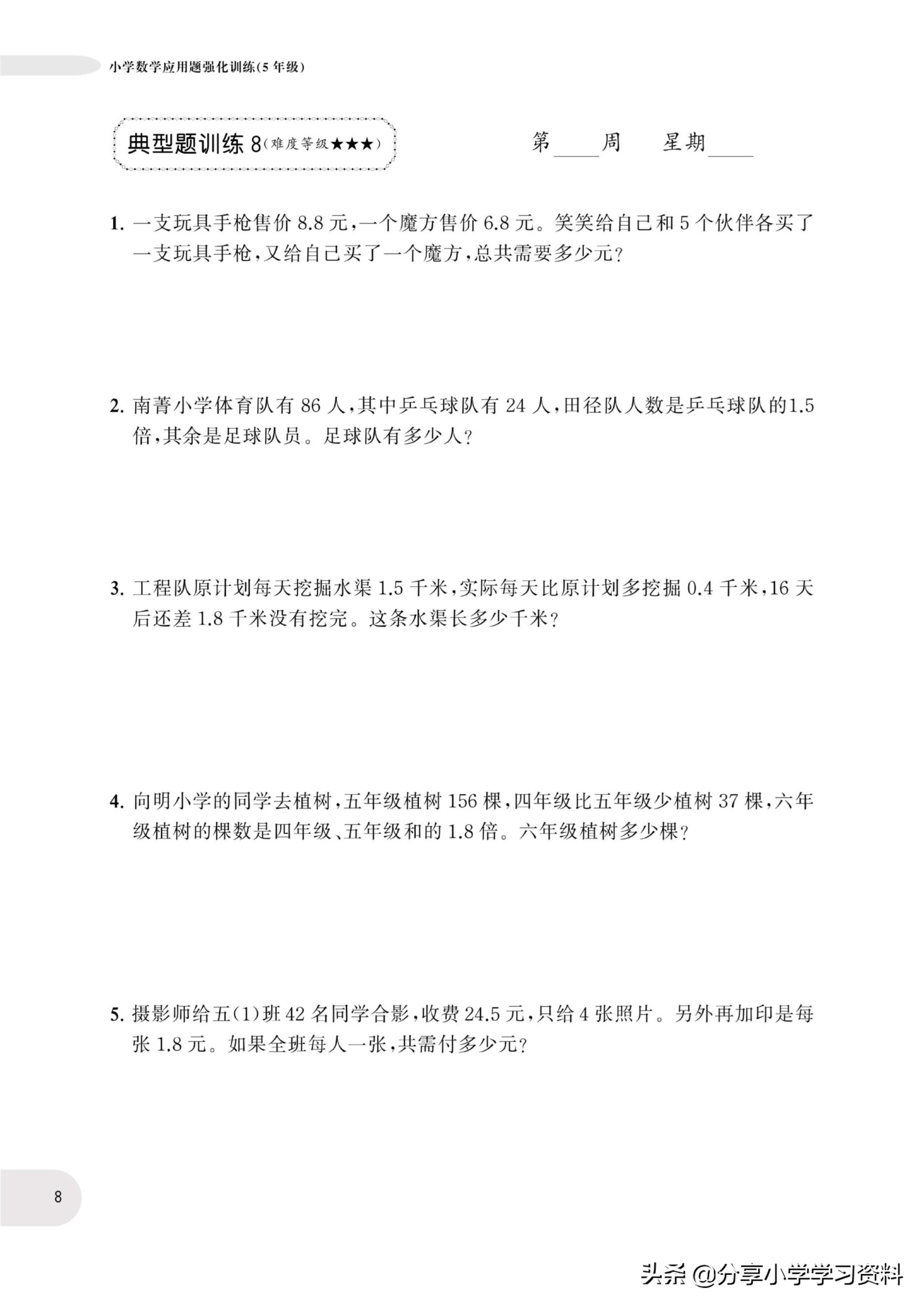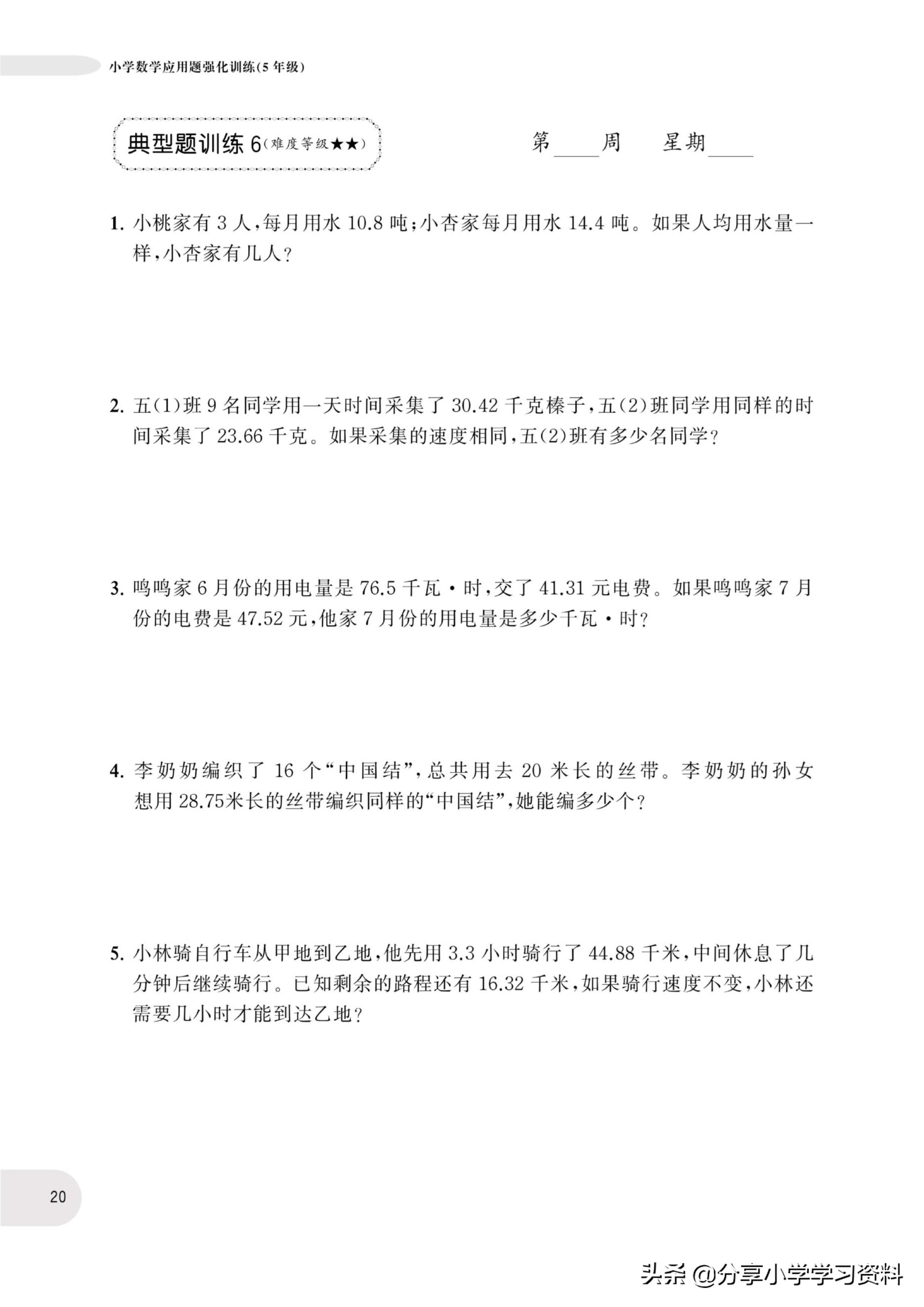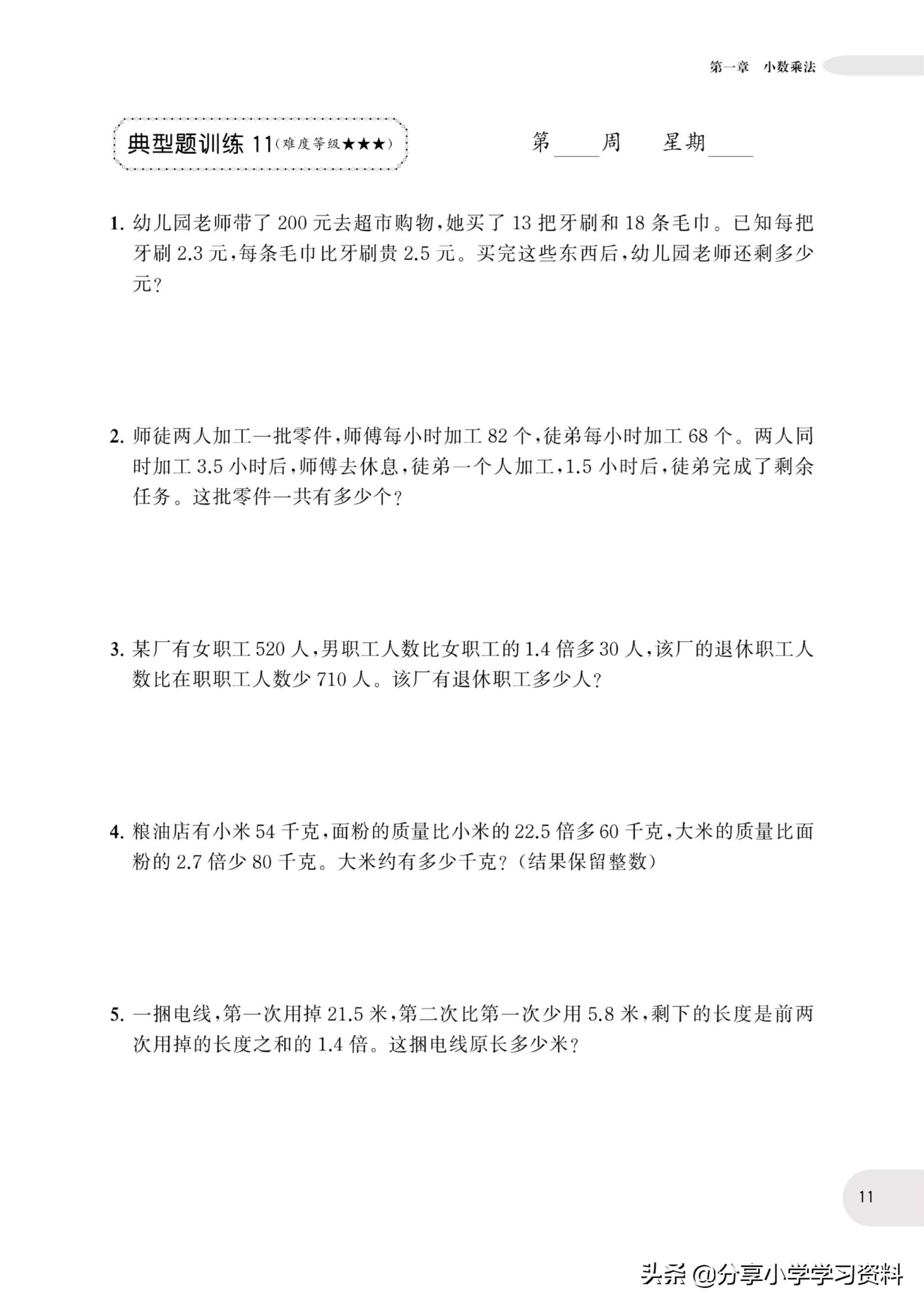 小学数学5年级上册应用题强化训练(有电子档)附答案