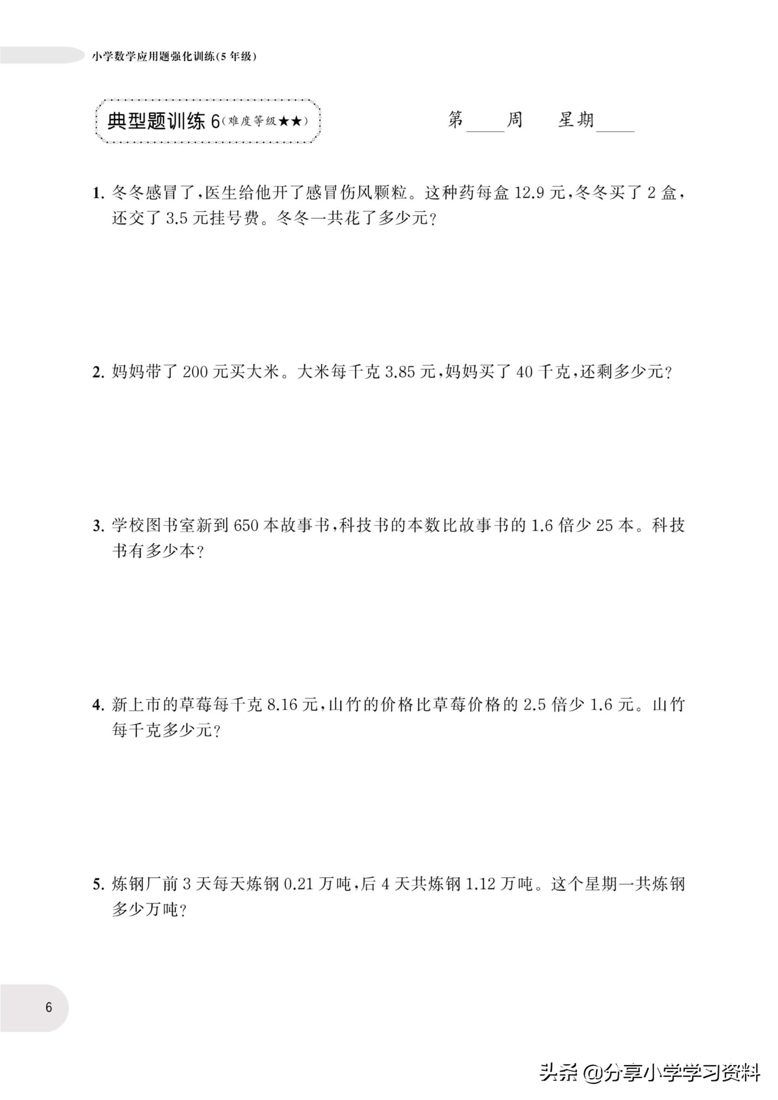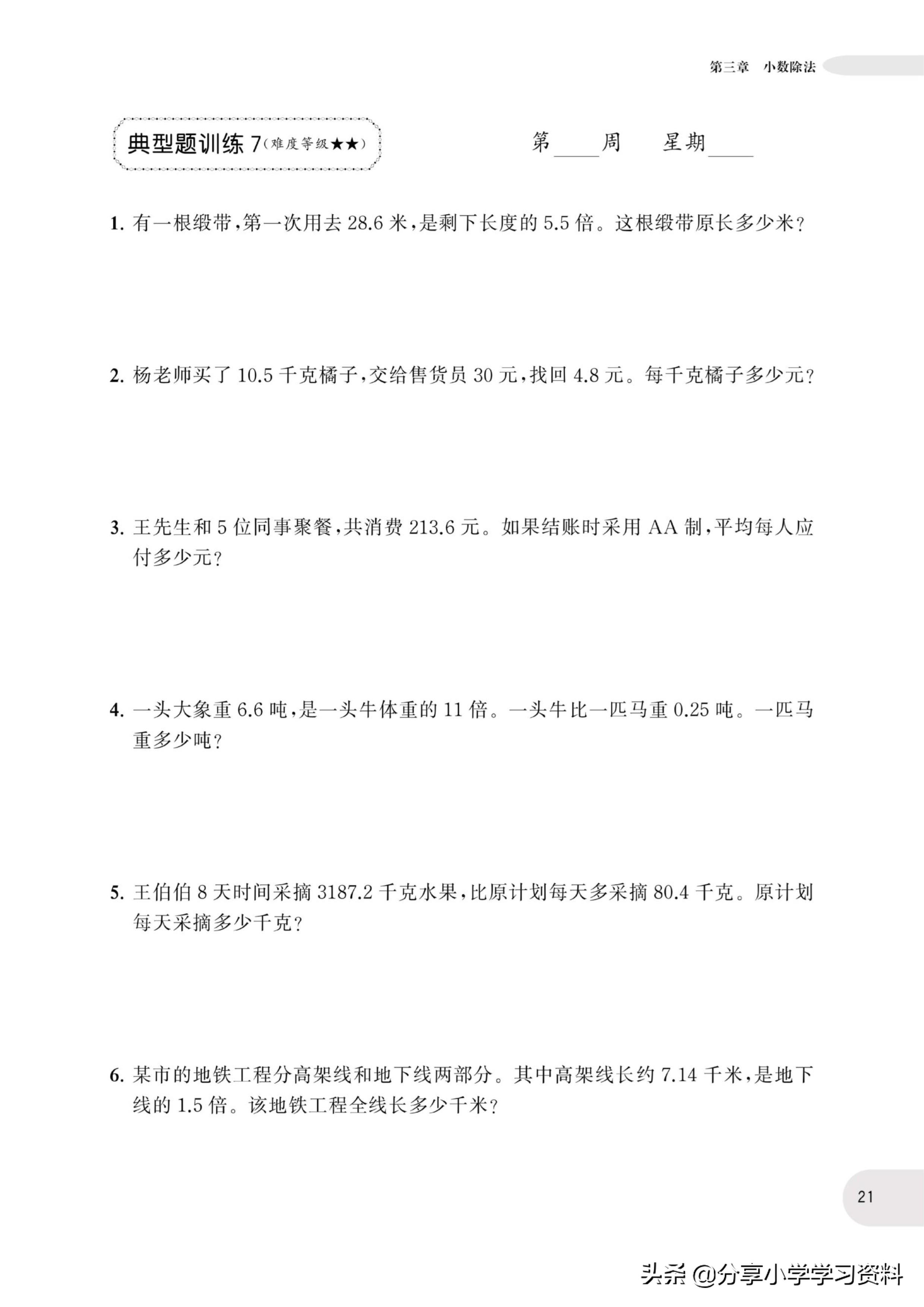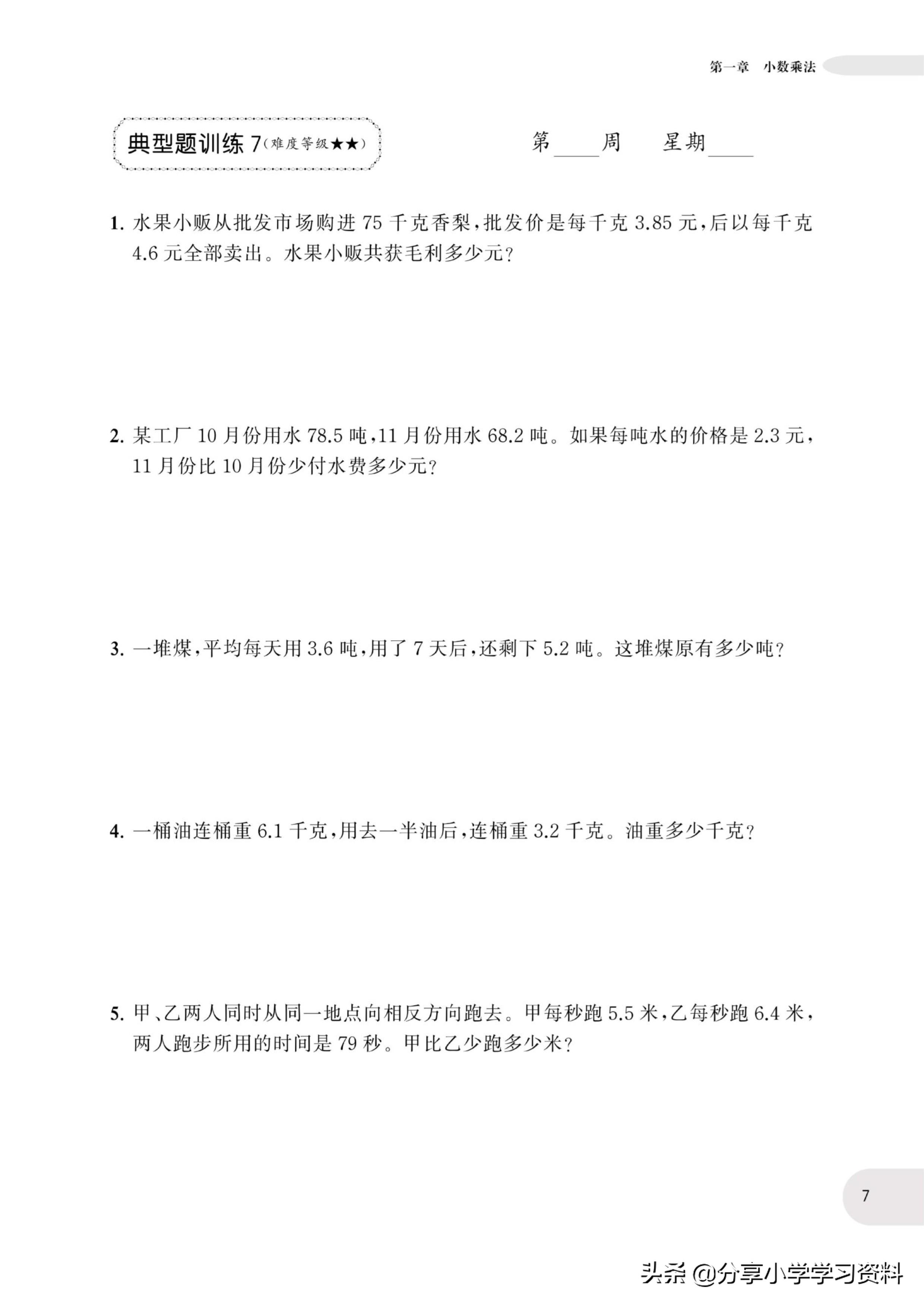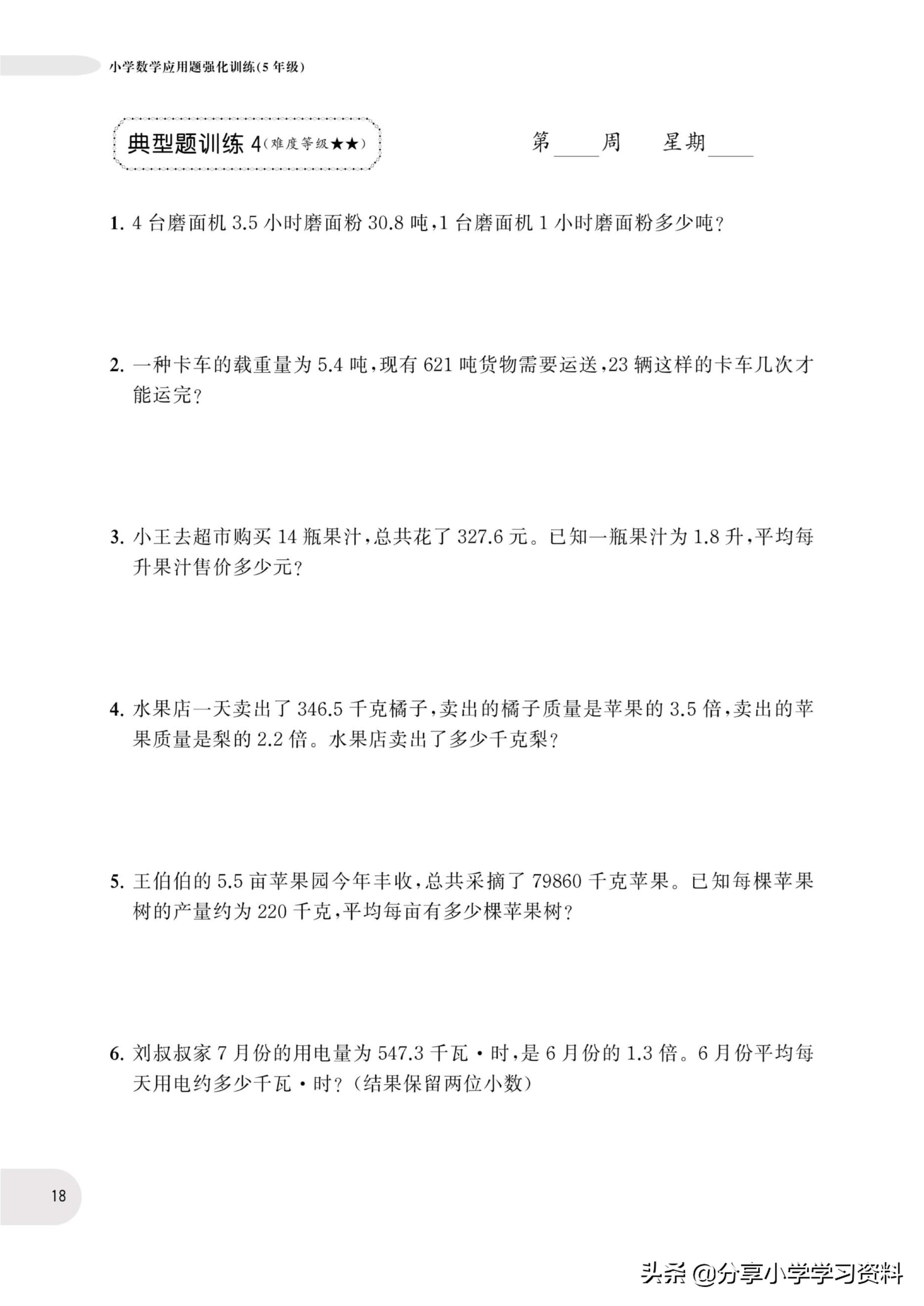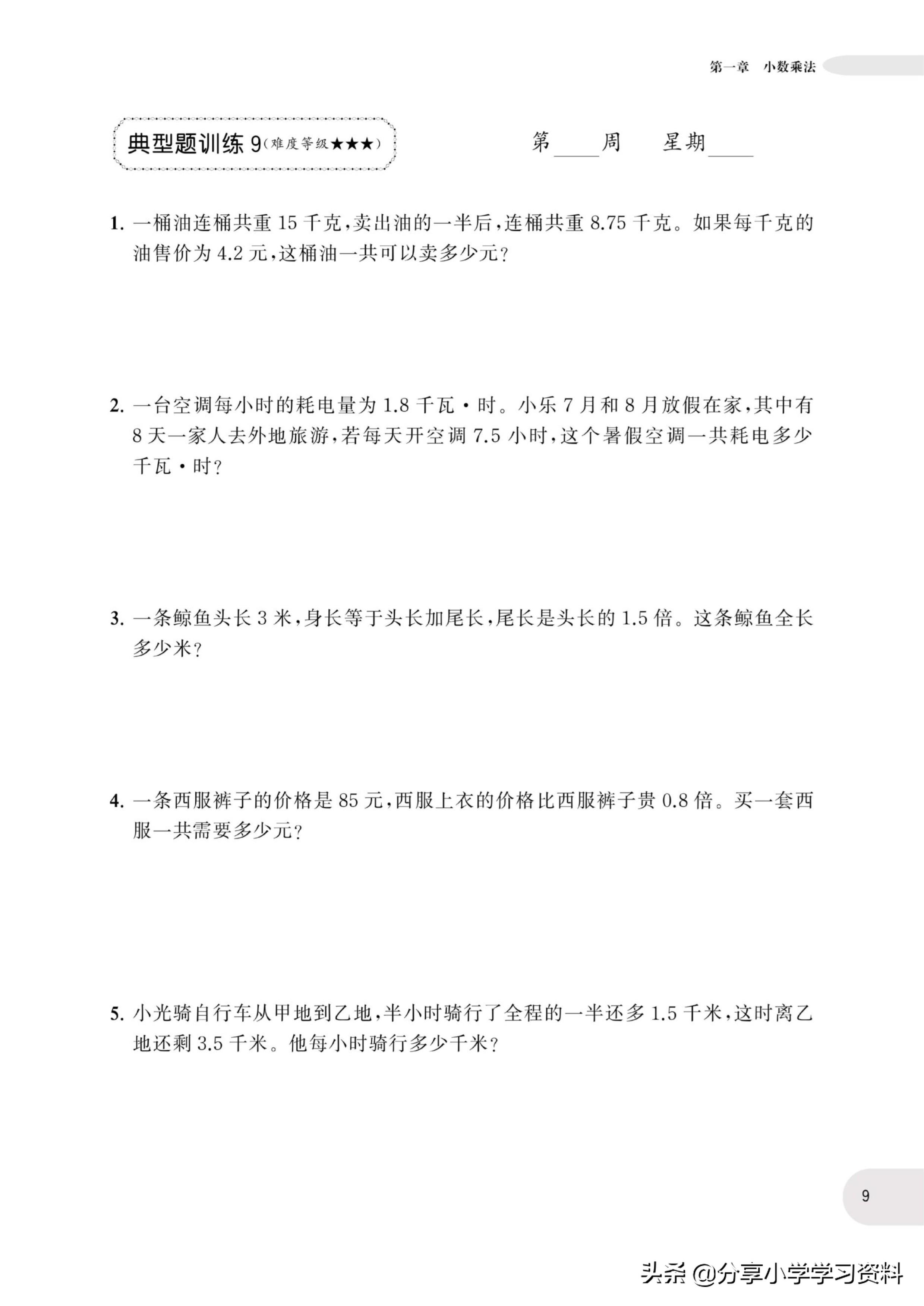 小学数学5年级上册应用题强化训练(有电子档)附答案