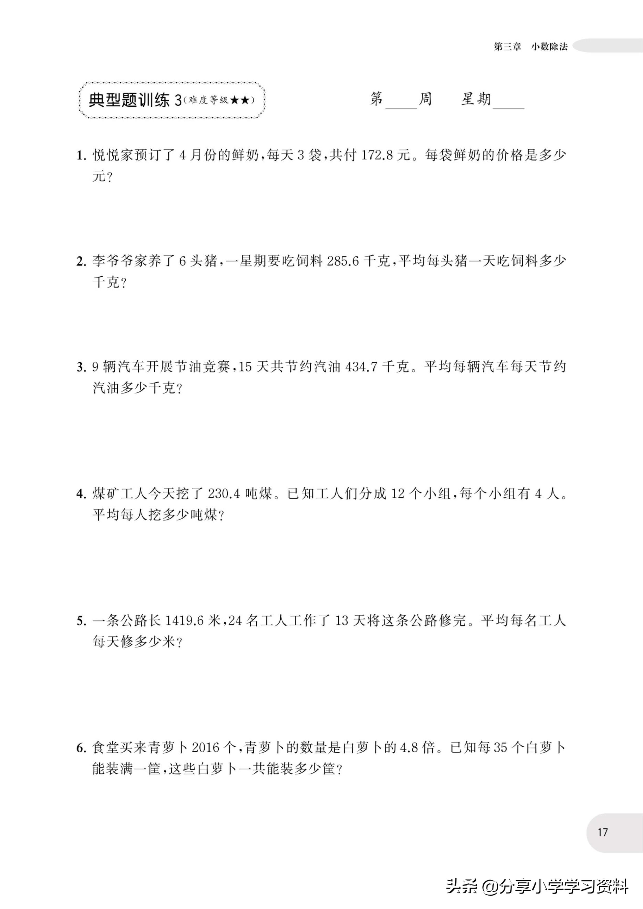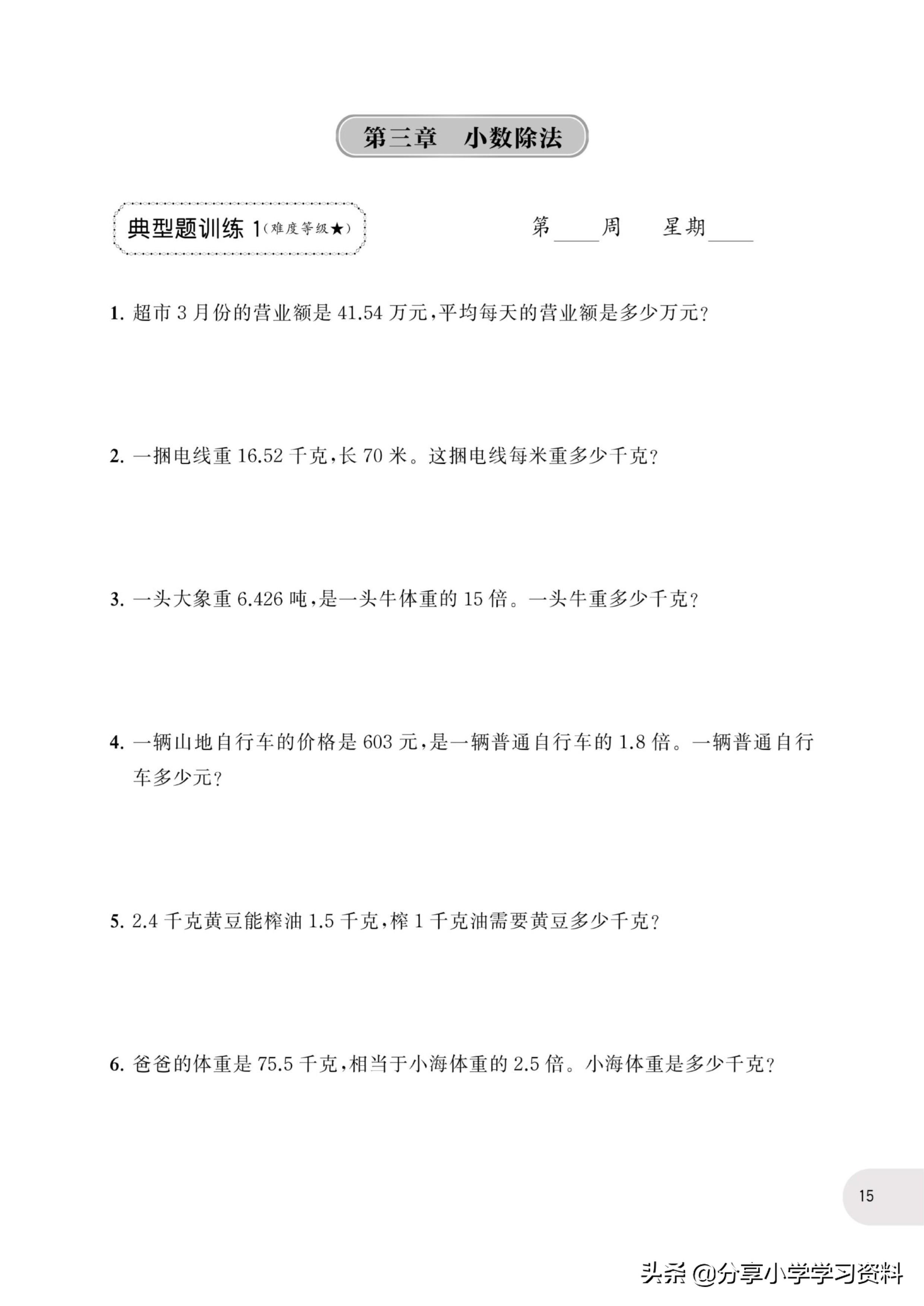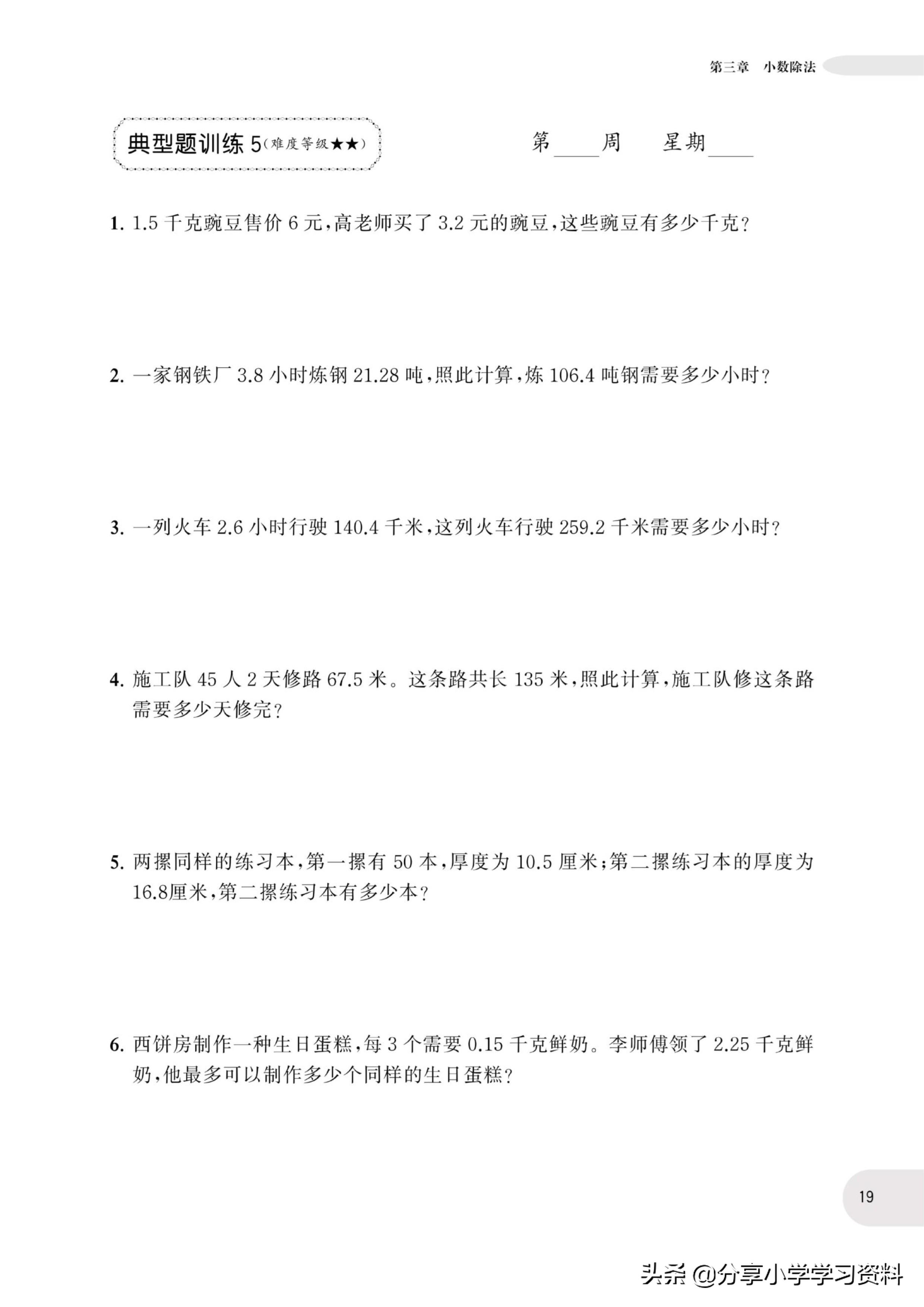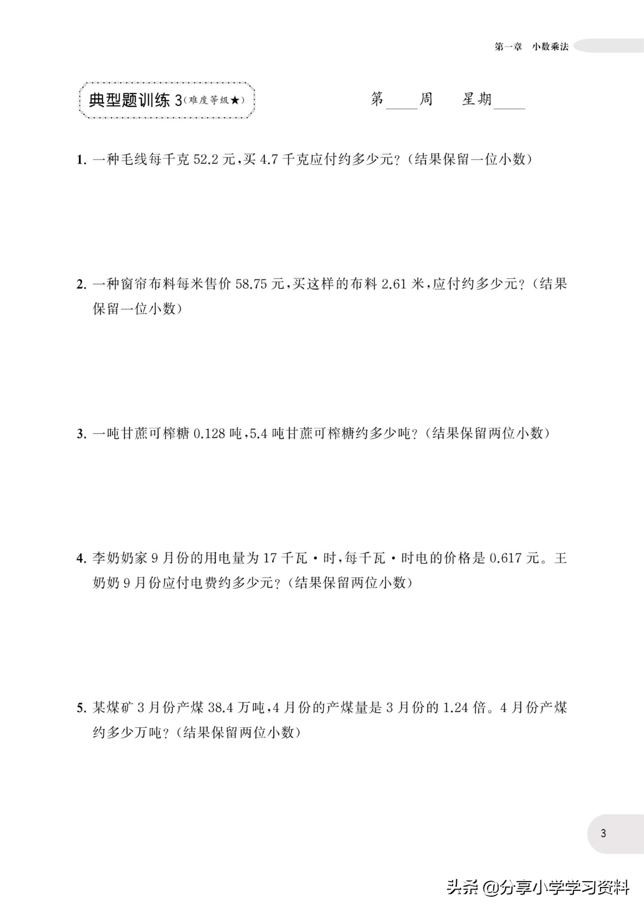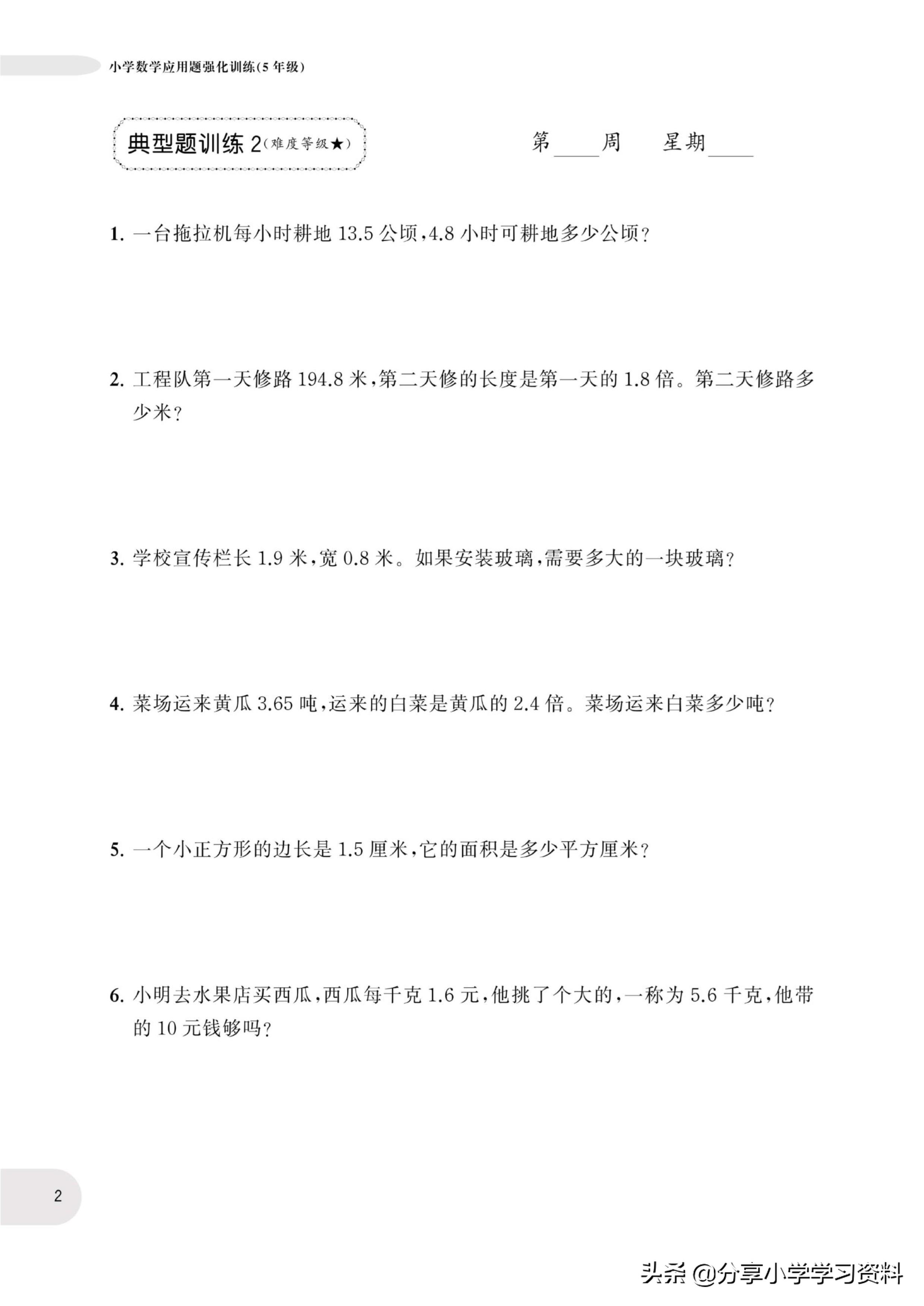 小学数学5年级上册应用题强化训练(有电子档)附答案