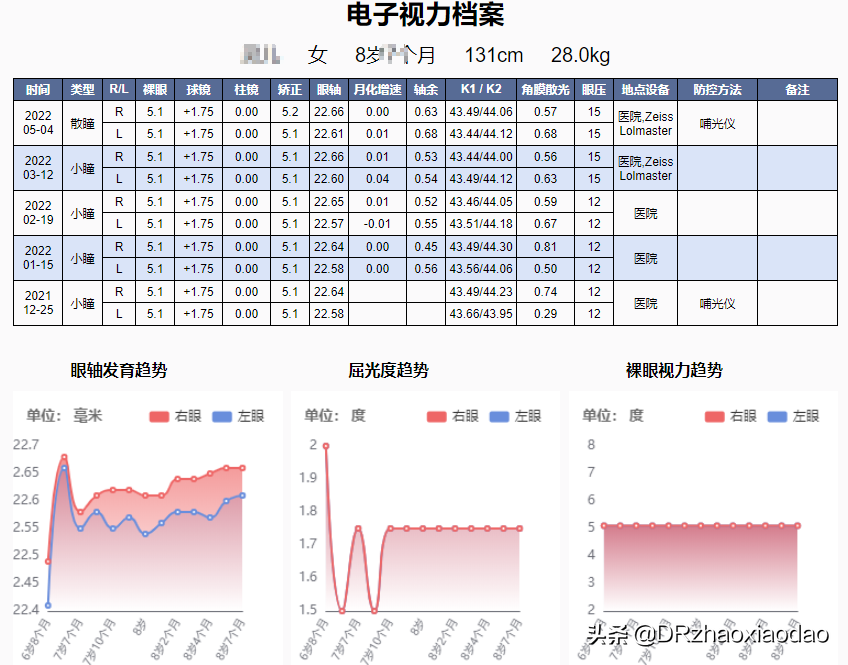 AL :眼轴。眼轴的重要性强调过很多次了,近视后天性增长的本质就是眼轴增长,眼轴是近视防控监测的核心指标