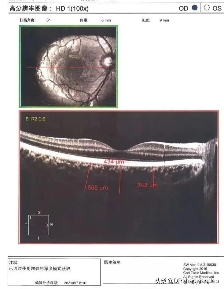 中央角膜厚度:角膜的厚度并不是平均分布,而是中央薄,四周厚,这个数据决定了孩子长大后控制在多少度近视以内,可以做激光手术摘镜