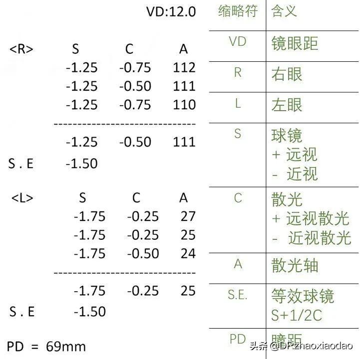S (Spherical):球镜,指近视、远视度数,其中近视用“-”表示,远视用“+”表示。例如“-1.25”就是近视125度,反之“+1.25”就是远视125度。
