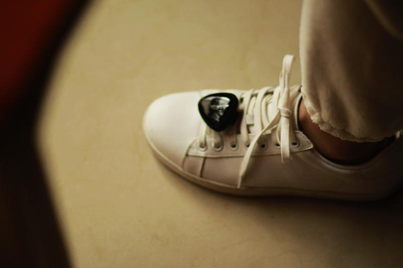 空气拨片搭配硅胶套,摇身一变成为体感架子鼓的脚步传感器。只要单机拨片按键,就可以一键切换脚鼓或者踩镲模式。非常有趣的现象是,我们右手捏拨片,左手通过手机APP切换和弦,脚鼓传感器就可以成为吉他拨片,实现吉他功能。
