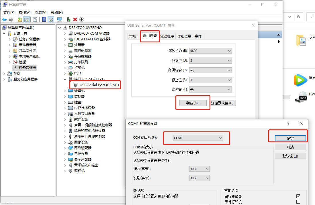 查看设置com口为com1