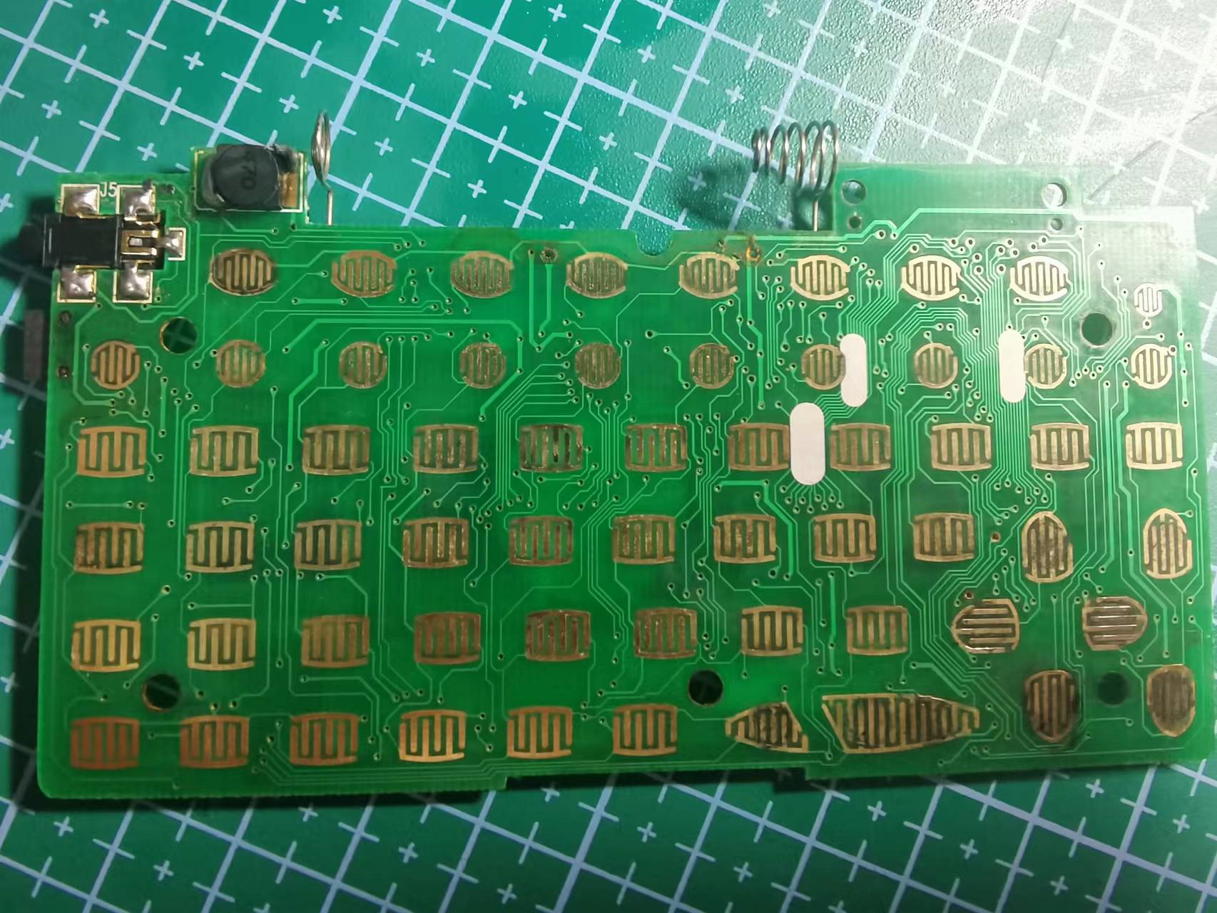 * 拆机,用镊子将导电布胶粘在按键下面即可