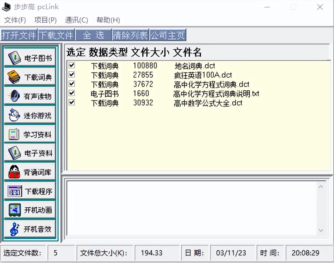 * 需要打开电子词典,按下下载按钮,之后再在电脑上点击开始通讯按钮