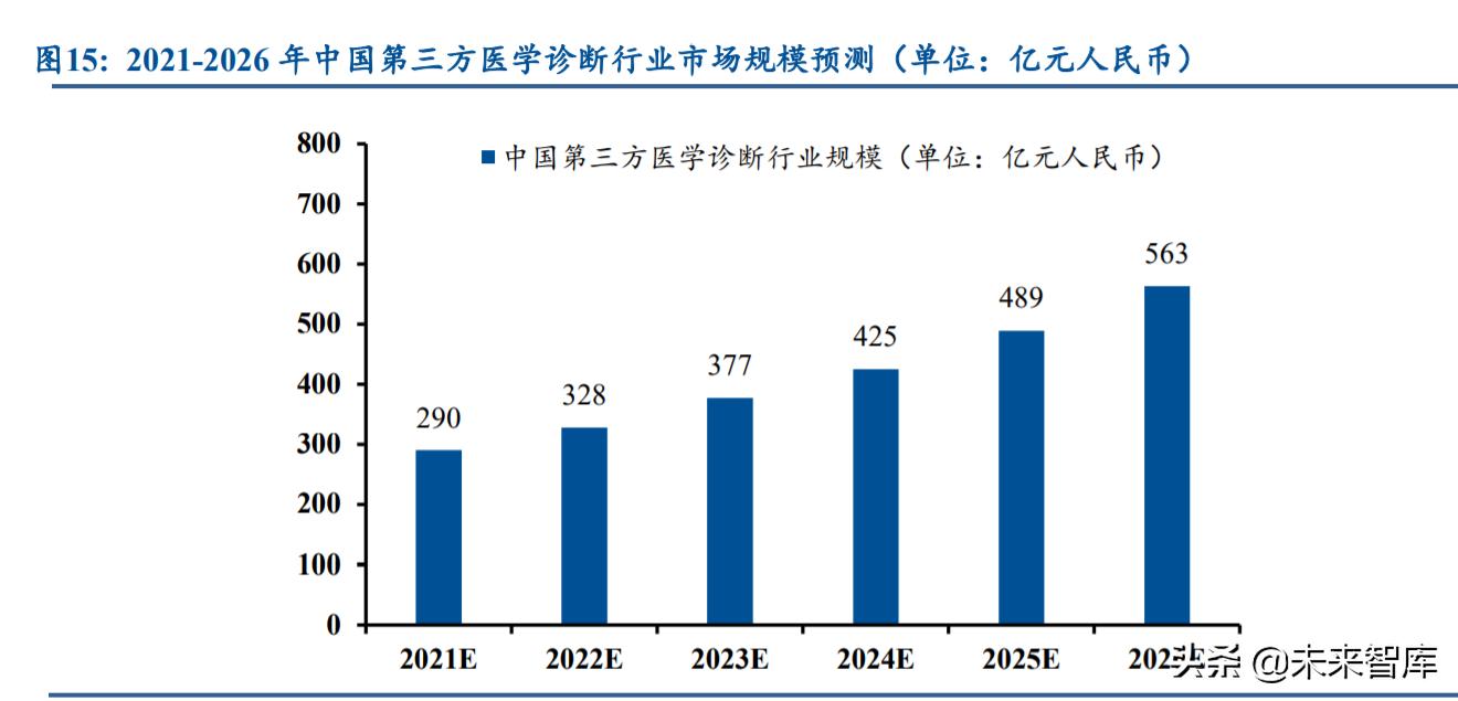 天孚通信:公司依托现有成熟的光通信行业光器件研发平台,利用团队在基础材料和 元器件、光学设计、集成封装等多个领域的专业积累, 积极向医疗检测领域拓展,为 客户提供配套新产品,主要包括了基础元件类产品和集成封装器件产品。根据公司公 告,对于新领域的产品,公司不同客户所处阶段有所差异,主要处于研发和客户样品 测试阶段。从市场规模来看,根据前瞻产业研究院预测,2021-2026 年中国第三方医 学诊断行业市场规模年均复合增长率在 14-15%左右,到 2026 年市场规模有望突破 560 亿元,整体空间广阔。(报告来源:未来智库)