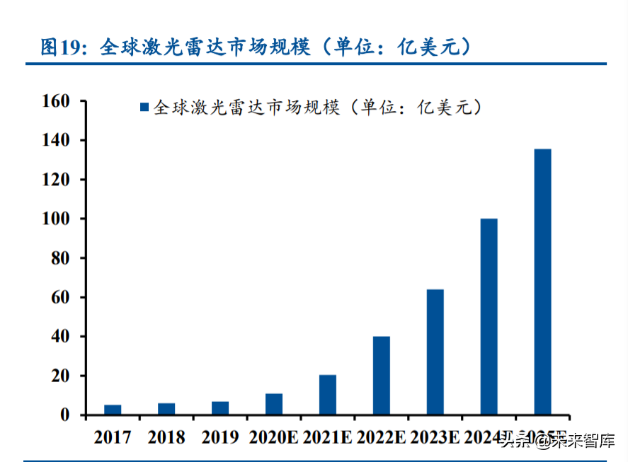 从市场情况来看,汽车领域的激光雷达产品整体仍处于导入期,大部分车型尚未使用 激光雷达,未来随着其走向成熟迎来价格下降,渗透率有望加速提升,市场空间广阔。根 据沙利文研究,2019 年全球激光雷达市场为 6.8 亿美元,预测 2025 年将增至 135.4 亿美元, 2019 年~2025 年年复合增速 64.5%。国内方面,2019 年市场规模为 2.3 亿美元,预测 2025 年 将增至 43.1 亿美元,2019 年~2025 年年复合增速 63.1%。