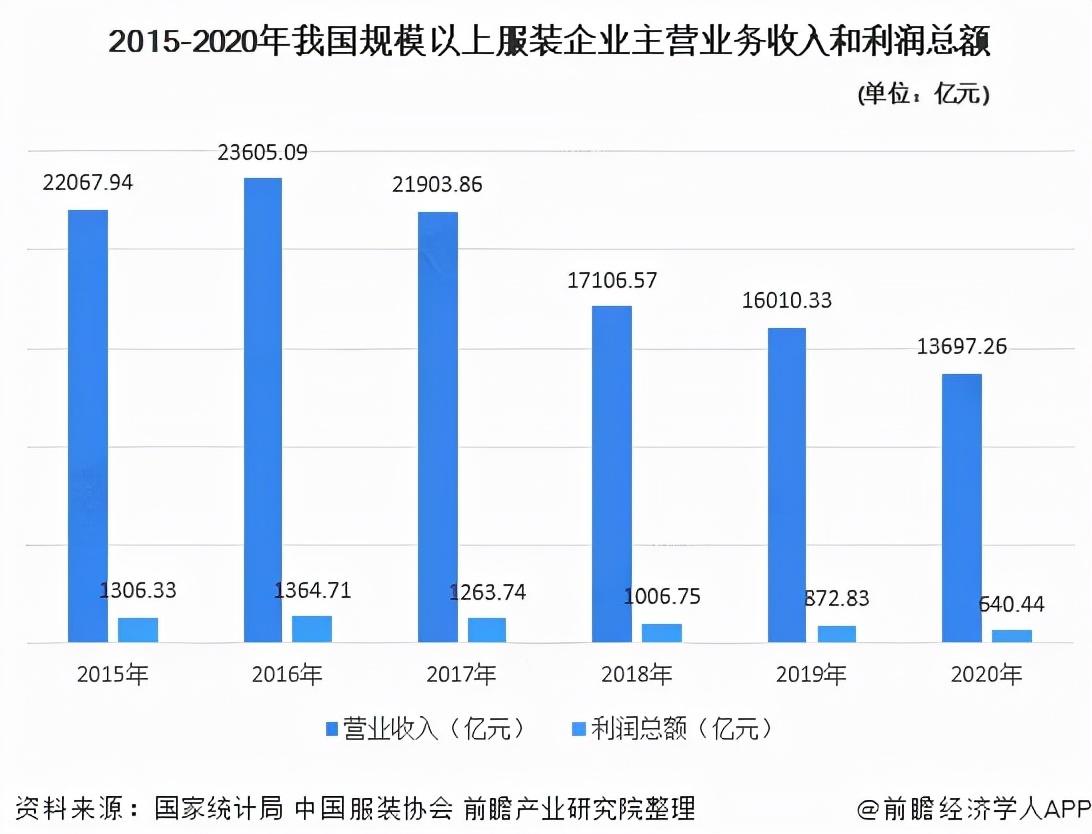 2020年全年,中国服装行业实现营业收入13697.3亿元,同比下降11.3%;规模以上服装企业产量为223.7亿件,同比下降7.7%。
