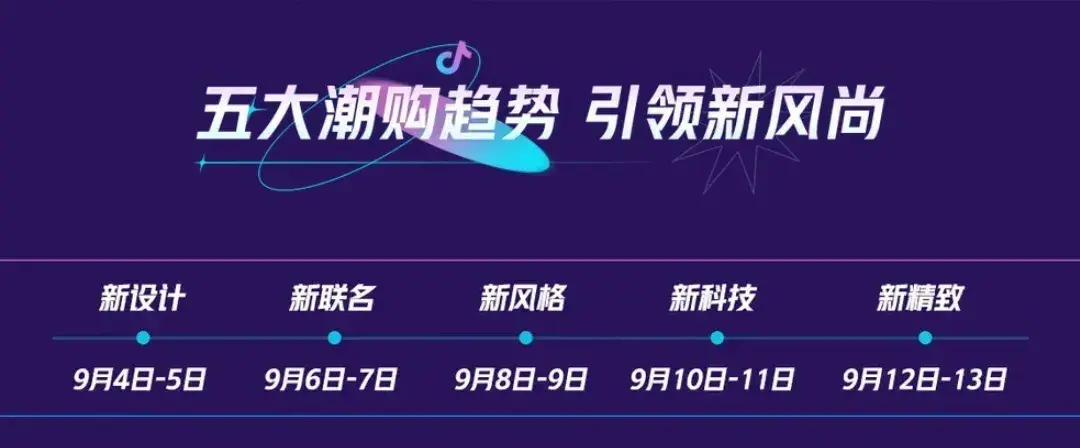 今年9月,抖音电商首开先河,打造“抖in新风潮”,推出了“新联名、新精致、新科技、新风格、新设计”五大秋冬潮流趋势。