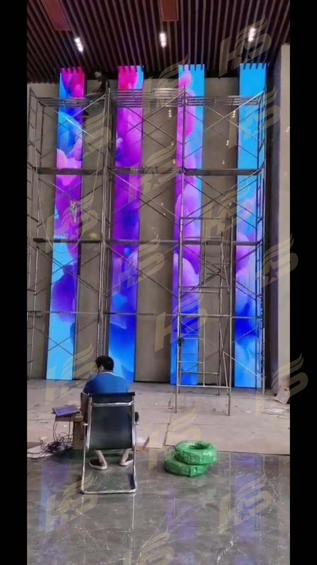随着音乐节奏轻快的跳跃中,一块25平方米正常播放视屏的高清平面LED显示屏徐徐得往两边 打开,就像一扇附有灵魂的大门一样,开至特定距离后再次往外平均分为4块竖条型的小屏幕,单独播放着各自画面,当4块LED屏幕再次合并为一个整体的大屏幕时画面再次合并成为一个整体画面,画面如此震撼,清晰并大屏幕没有任何缝隙的连接。