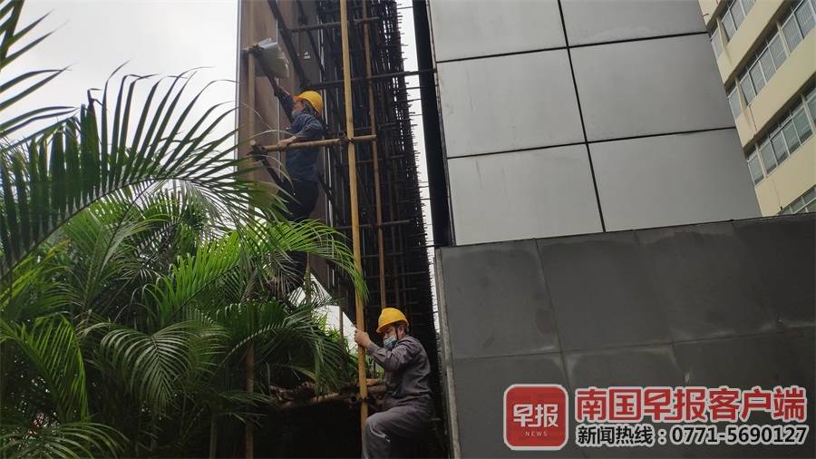 4月10日,工人在做挡板施工。南国早报记者 何定坚摄