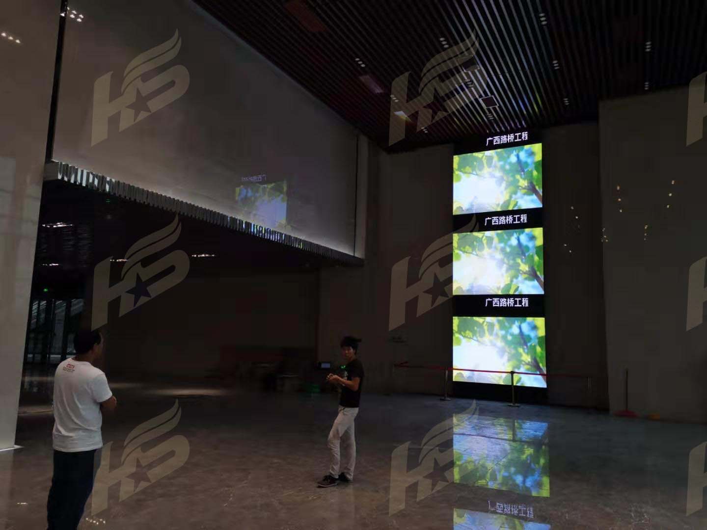 2019年8月广西南宁炎炎夏日,热浪滚滚,恰逢七夕当天,广西路桥集团公司总部前台自动开合LED大屏幕正式点亮交付使用。