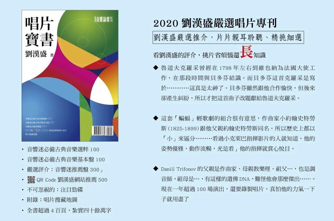 刘汉盛严选唱片专刊——《2020唱片宝书》 ,收录1950年代以来的古典发烧唱片宝藏,片片亲耳聆听、精挑细选。