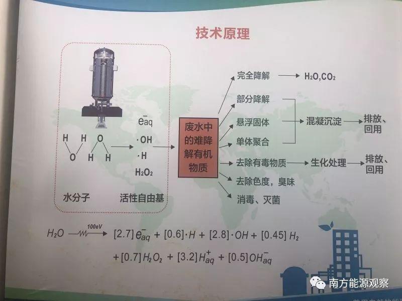 为环保埋单,意味着生产企业需要更高废水处理效率的技术,同时经济性不能弱于原有方案。这给核技术带来市场空间——高能电子束流在水中可以产生强氧化性自由基,自由基能高效分解有机污染物,同步实现消毒灭菌。